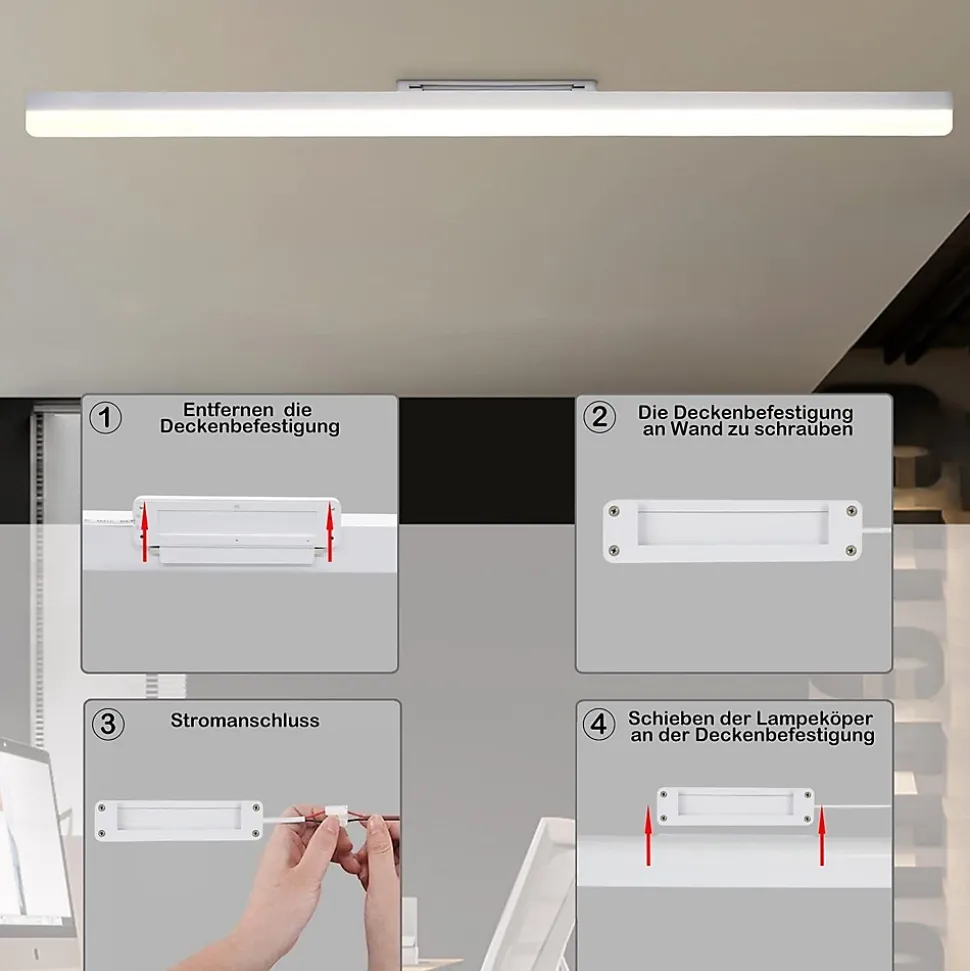 Matériau : plafonnier LED en ABS + PC de haute qualité, avec boîtier blanc laiteux. La couleur blanc laiteux transparent offre un éclairage uniforme et lumineuxDimensions : 90*5*4,5 cm, tension : 230 V, puissance : 36 W. Les lampes LED sont installées en permanence et une bonne efficacité énergétique peut être garantie grâce à la technologie LEDDomaine d’application : idéal pour bureau, chambre, cave, bureau, magasin, établi, usine, couloir, escalier, loft, buanderie, débarras, etc.La lampe LED pour plafond et mur peut être montée de plusieurs manières sur le mur, le plafond ou la suspension. Plaque en acier amovible pour un réglage facile.Le plafonnier LED avec lumière du jour 4000K convient parfaitement comme éclairage sous un meuble pour la cuisine ou comme éclairage de placard ou plafonnier dans le garage et l’atelier.