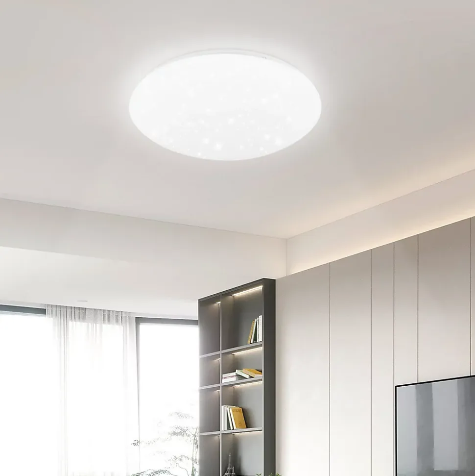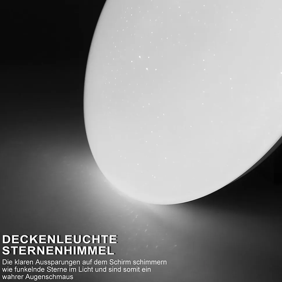 Design ciel étoilé : le plafonnier design ciel étoilé contient des milliers de petits points intégrés dans l’abat-jour, ce qui lui donne l’apparence d’un ciel étoilé étincelant. Que vous regardiez le ciel étoilé le soir ou profitiez de sa beauté pendant la journée, le plafonnier design ciel étoilé confère à l’intérieur une atmosphère et une joie uniques. Très approprié pour une installation dans les chambres d’enfants et comme cadeau de Noël pour la famille, les amis et les enfants.【Blanc froid 6000K】 Le plafonnier blanc froid a une température de couleur élevée. Non seulement il fournit un éclairage vif, mais il augmente également la luminosité et la clarté globale de la pièce. Il peut également servir de décoration intérieure et donner à la pièce une ambiance moderne. (Non dimmable)【Détails techniques】Dimension : 30*30*7 cm ; Température de couleur : blanc froid ; Intensité variable : non ; Puissance : 18 W, tension : 230 V ; Classe de protection : IP44 ; Matériau : plastique et métal ; Les ampoules LED sont installées de manière permanente et une bonne efficacité énergétique peut être garantie grâce à la technologie LED. La durée de vie est de 25 000 heures.【Domaines multi-applications】 Ce plafonnier ciel étoilé convient non seulement aux salles de bains, chambres, couloirs, cuisines, salles à manger, mais également aux salons tels que les chambres et les chambres d’enfants.【Service client】 Nous offrons une garantie de 2 ans pour nos lumières. Si vous avez des questions, n’hésitez pas à nous contacter à tout moment.
