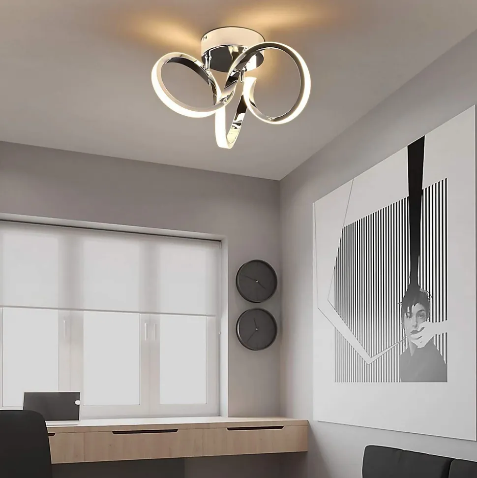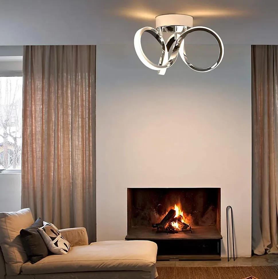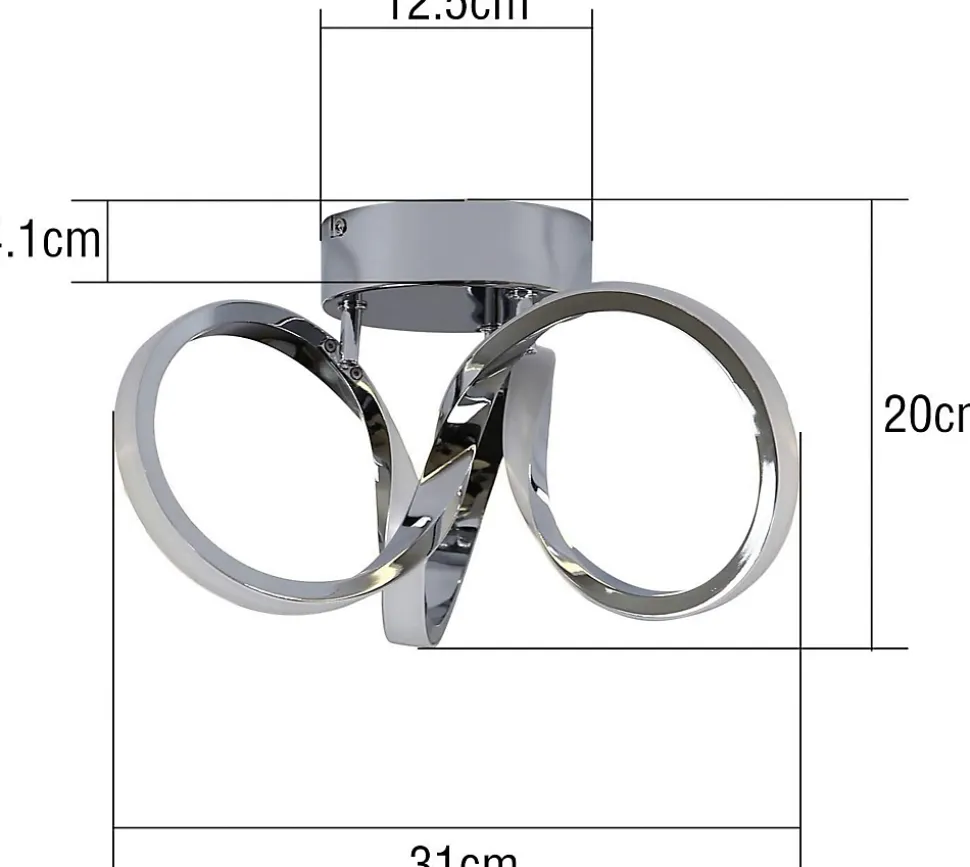 Design moderne : le plafonnier LED avec forme de vague incurvée intégrée présente un aspect aluminium brossé de haute qualité. Les bâtons lumineux LED installés en permanence et fermement verrouillés ont un aspect chromé.Matériau : les tiges lumineuses incurvées de haute qualité et la plaque de plafond sont en aluminium. La lampe a une finition chromée cool avec un aspect satinéNon dimmable : le plafonnier moderne avec puce LED de haute qualité, lumière plus uniforme et durable, lumière plus étendue, perles de lampe blanc chaud (3000 K), lumière plus douce pour protéger la vue. Faible consommation d’énergieDétails techniques : Dimensions de la lampe : environ 31*26*20 cm. Dimension de la plaque de plafond : Ø12,5*4cm. Consommation électrique : 19W. Type d’ampoule : LED. Lampes installées en permanence : Oui. Alimentation et type de prise : électrique filaire. Tension : 230 VDomaine d’application : ce plafonnier fournit une lumière blanche et chaude, de couleur chrome, parfaite pour une pièce moderne, un salon, une chambre, une salle à manger, une cuisine, un bureau, un bureau, un hôtel, un restaurant, etc. Garantie : 2 ansSi vous recevez le produit et rencontrez des problèmes, veuillez contacter notre service client.