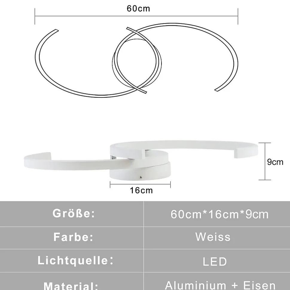 Plafonnier avec une forme originale : inspiré de la lune tordue, ce plafonnier se compose de deux brins de lune, nouveaux, uniques, créatifs, simples et élégants.Matériaux de qualité supérieure : le plafonnier avec procédé de peinture par pulvérisation est composé de fer et d’aluminium de qualité supérieure. La structure métallique rend cette lampe attrayante même dans l’obscurité et constitue une œuvre d’art distinctiveTempérature de couleur respectueuse des yeux : ce plafonnier a une faible puissance de 24 W, ce qui est économe en énergie . La lumière blanche chaude et non scintillante de 3 000 K détend les yeux et élimine la fatigue.Installation facile : le paquet contient des vis et une mini clé pour installer le plafonnier, et vous pouvez l’installer indépendamment selon les instructions d’installation fournies (français non garanti).Ce plafonnier a une garantie de deux ans, pendant deux ans d’utilisation, si votre luminaire présente des problèmes de qualité, n’hésitez pas à nous contacter, nous offrons un service après-vente parfaitLe produit a été récemment révisé et modernisé, et il existe des cas où les scores d’efficacité énergétique ne correspondent pas à la page de détail. Si vous recevez le produit et rencontrez des problèmes, veuillez contacter notre service client.