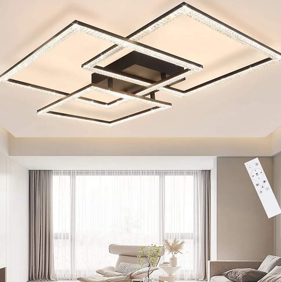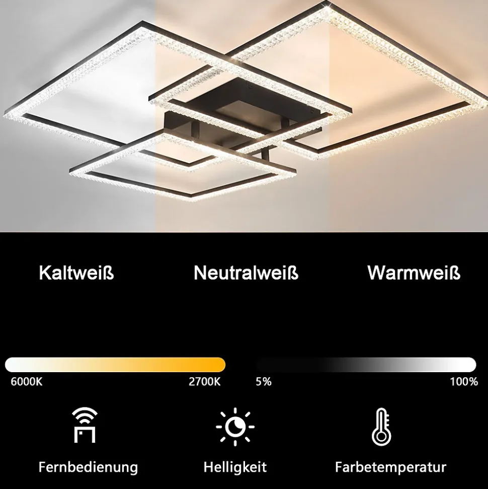 【Design unique】 : ce plafonnier en cristal se compose de trois cadres en cristal scintillant et de matériaux métalliques de haute qualité, que vous pouvez librement assembler dans n’importe quelle forme que vous souhaitez décorer votre salon.【Détails importants】 : le plafonnier du salon peut être atténué entre 5 % et 100 % pour répondre à vos besoins de luminosité. Vous pouvez les installer dans le salon, la chambre, le bureau, etc. Puissance : 80 W, tension : 230 volts, transmission lumineuse élevée du plafonnier en cristal.【LED à intensité variable】 : le plafonnier en cristal a des températures de couleur blanc chaud, blanc neutre et blanc froid, que vous pouvez atténuer à l’aide de la télécommande incluse pour trouver votre température de couleur préférée.【Installation facile】 : vous pouvez installer la lumière indépendamment avec les pièces de vis fournies, mais assurez-vous de connecter l’alimentation électrique de la maison tout en éteignant l’alimentation.