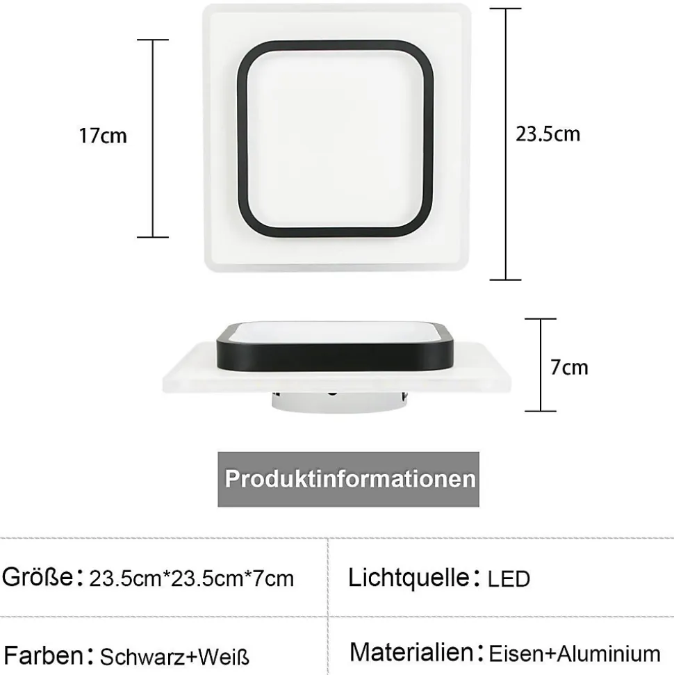 Design minimaliste : le plafonnier led moderne a une forme géométrique, le plafonnier se compose de deux formes de tailles différentes avec un design simple et généreux et un aspect petit et compact. La lumière chaude de 3000 k crée une atmosphère minimaliste et cosymatériau : le plafonnier est en acrylique et en métal, l’abat-jour est en acrylique avec une bonne transmission de la lumière, une lumière douce et chaude, une couleur uniforme et protège les yeux. La surface est peinte, avec une texture délicate et une belle atmosphèrespécification : taille : 23,5×23,5×7 cm. Puissance : 14w température de couleur : 3000 k. Variation : non dimmable. Plage d’éclairage : 5-10㎡. L’utilisation de la technologie led consomme moins d’énergie et constitue un bon choix pour la consommation électrique de la maison et du bureau.installation facile : les plafonniers led n’ont pas besoin d’être assemblés, le câblage interne du corps de la lampe est déjà terminé. Tout ce que vous avez à faire est de connecter les fils et de les fixer au plafond. Pour plus d’informations, consultez les instructions d’installationservice client : si vous avez des questions ou des problèmes, veuillez nous contacter. Nous essaierons de trouver une solution pour vous le plus rapidement possible