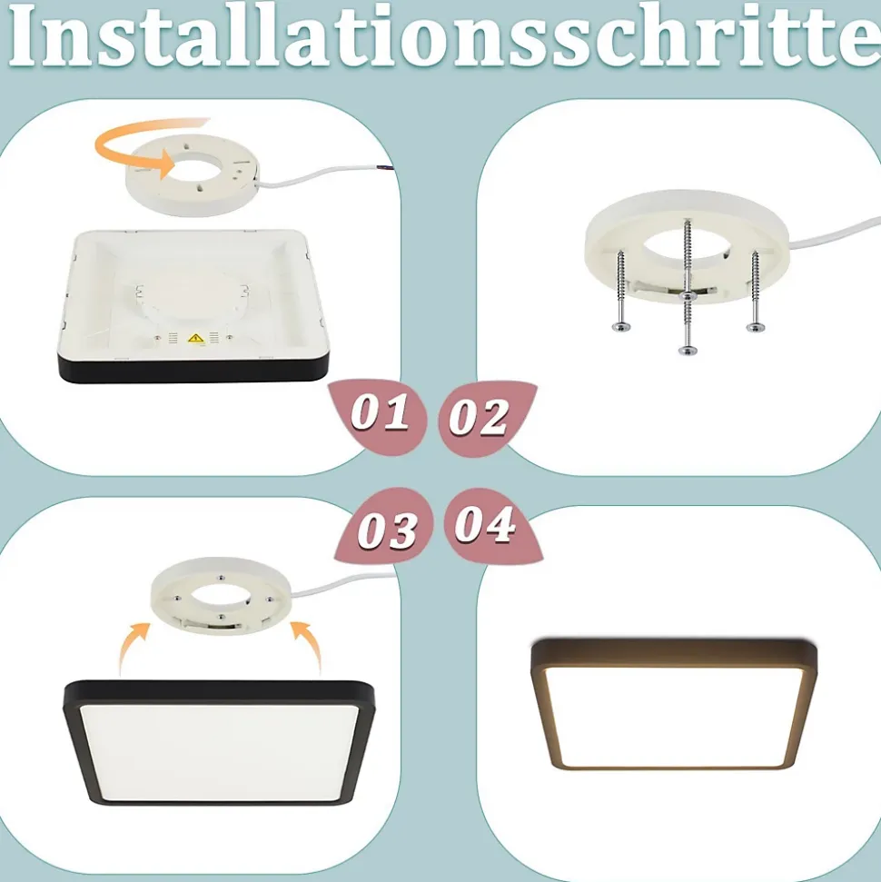 Design plat : avec seulement 2,5 cm d’épaisseur, ce plafonnier LED présente des lignes ultra fines et minimalistes. L’apparence mince et élégante s’adapte parfaitement à n’importe quel design de pièce. L’éclairage blanc neutre 4000K crée une atmosphère chaleureuse et confortable.Détails techniques : cette lampe de salle de bain de 18 W de haute qualité peut remplacer directement une ampoule de 180 W et est encore plus économe en énergie. Sa durée de vie peut atteindre 25 000 heures. Type de lampe : LED ; Puissance : 18 W ; Température de couleur : 4000K ; Dimensions : 23*23*2,5 cm ; Indice de rendu des couleurs : CRI > 80 ; Matériau : plastique ; Tension : 230 V.Protection des yeux : l’indice de rendu des couleurs élevé (CRI≥80) de la lampe de chambre fournit une lumière vive et naturelle, ce qui nous permet de percevoir avec précision les couleurs originales des objets. L’abat-jour est semi-transparent, ce qui permet un éclairage uniforme et doux sans éblouissement ni scintillement. Cela réduit et protège efficacement la fatigue oculaire.Polyvalent : le plafonnier LED peut être facilement utilisé dans la salle de bain, sur le balcon et dans la cave à vin et empêche la poussière et les insectes de pénétrer à l’intérieur de la lampe. Son matériau de revêtement protecteur efficace convient à la salle de bain, à la chambre, au couloir, à la cuisine, à la cave, au bureau, à la chambre d’enfant ou au salon.Service client : nous offrons une garantie de 2 ans sur nos éclairages et notre service client est tout aussi unique que le design de notre lampe moderne, la qualité est impressionnante. Si vous avez des questions, n’hésitez pas à nous contacter ※ L’emballage de cette série de produits est mis à jour. S’il existe des différences dans l’emballage, veuillez vous référer aux informations sur la page détaillée du produit comme faisant autorité.
