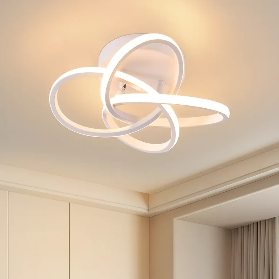 Design moderne : Plafonnier LED avec un design floral créatif à quatre pétales et un guidage précis de la lumière. Les pétales entrelacés symétriquement projettent un jeu d’ombre et de lumière unique dans le salon, offrant un éclairage chaleureux et une décoration parfaite.Efficacité énergétique et protection des yeux : Ce plafonnier moderne offre une durée de vie allant jusqu’à 20 000 heures et est plus économe en énergie que les ampoules à incandescence classiques. Il utilise une source lumineuse LED stable, sans éblouissement ni scintillement, avec un abat-jour en silicone qui protège vos yeux en diffusant une lumière plus douce et plus uniforme dans la pièce.Largement utilisé : Ce plafonnier LED moderne et élégant est idéal pour une utilisation dans une chambre, un salon ou une cuisine. Sa luminosité élevée de 3 400 lumens convient aux pièces de 5 à 20 m², telles que les salons, les chambres, les salles à manger, les cuisines, les chambres d’enfants, les bureaux, etc. Spécifications du produit : Plafonnier noir/blanc, dimensions : 32 x 32 x 16 cm, tension : 220-240 V, puissance : 28 W, température de couleur : blanc chaud 3000 K, non variable. Fabriqué en métal et silicone de haute qualité, ce plafonnier est résistant à la corrosion et à la rouille, robuste et durable, résistant aux vapeurs de cuisine et aux chocs dans les couloirs.Installation facile : Installation facile : il suffit de connecter le câble et de visser le plafonnier au plafond. Pour toute question, n’hésitez pas à nous contacter et nous vous répondrons dans les plus brefs délais.