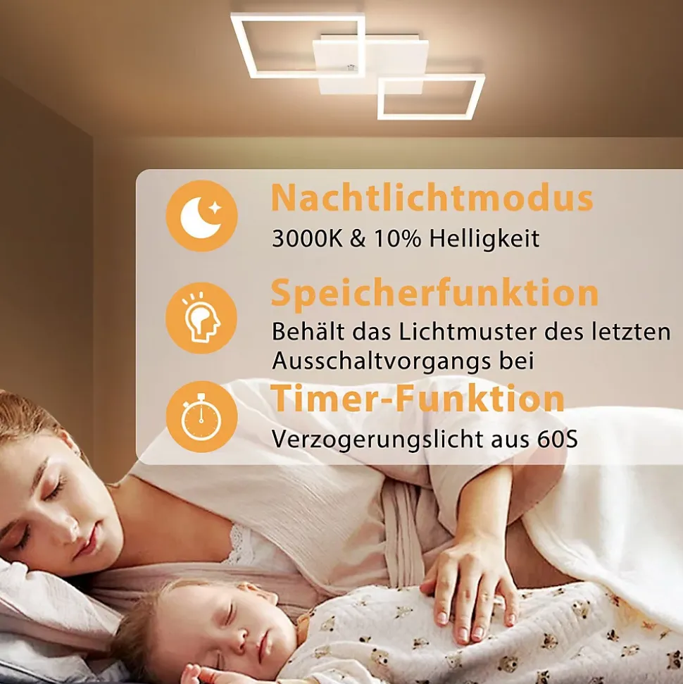 design moderne : le plafonnier led présente un design géométrique composé de 2 éléments lumineux carrés dans une forme épurée et minimaliste. Ce n’est pas seulement une lumière intérieure décorative parfaite, mais elle fournit également un éclairage chaleureux pour votre piècefonction dimmable et mémoire : la luminosité (10%-100%) et la température de couleur (3000k-6500k) du plafonnier led peuvent être réglées à l’aide de la télécommande incluse. Grâce à la fonction minuterie, les plafonniers s’éteignent automatiquement 60 secondes avant d’aller se coucher. Et vous pouvez également régler le mode veilleuse (10% de luminosité) pour vous endormir plus rapidement. La fonction mémoire enregistre la dernière température de couleur et la dernière luminosité réglées (plus de 10 s d’arrêt).efficacité énergétique et protection des yeux : plafonnier carré moderne 32w, 2300lm, plus économe en énergie que les ampoules traditionnelles, avec une longue durée de vie de plus de 20 000 heures. Le rendu des couleurs élevé (cri> 80) assure un meilleur effet visuel, le plafonnier adopte une source de lumière led stable, sans éblouissement et sans scintillement, qui peut mieux protéger vos yeuxlarge application : ce plafonnier led moderne et élégant est parfait pour une utilisation comme lampe de chambre, lampe de salon, lampe de cuisine. Convient pour un espace de 5 à 20 mètres carrés tel que salon, chambre, salle à manger, cuisine, chambre d’enfants, bureau, salle de jeunesse, etc. La télécommande utilise la technologie de télécommande sans fil 2,4g, qui est plus sensibleinstallation facile : conception d’installation humanisée, l’installation du plafonnier à intensité variable et l’utilisation de la télécommande se trouvent dans le manuel d’instructions dans l’emballage. Si vous rencontrez des problèmes lors de l’installation ou de l’utilisation, veuillez nous contacter, nous résoudrons le problème pour vous dans les plus brefs délais.