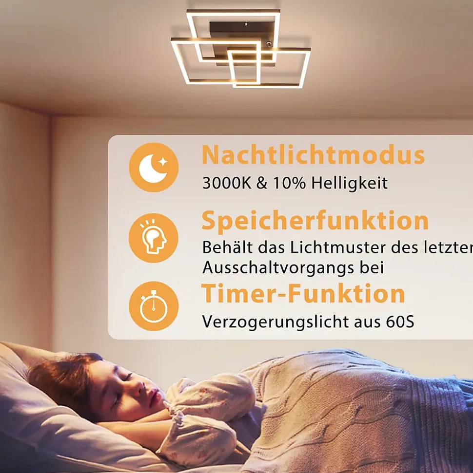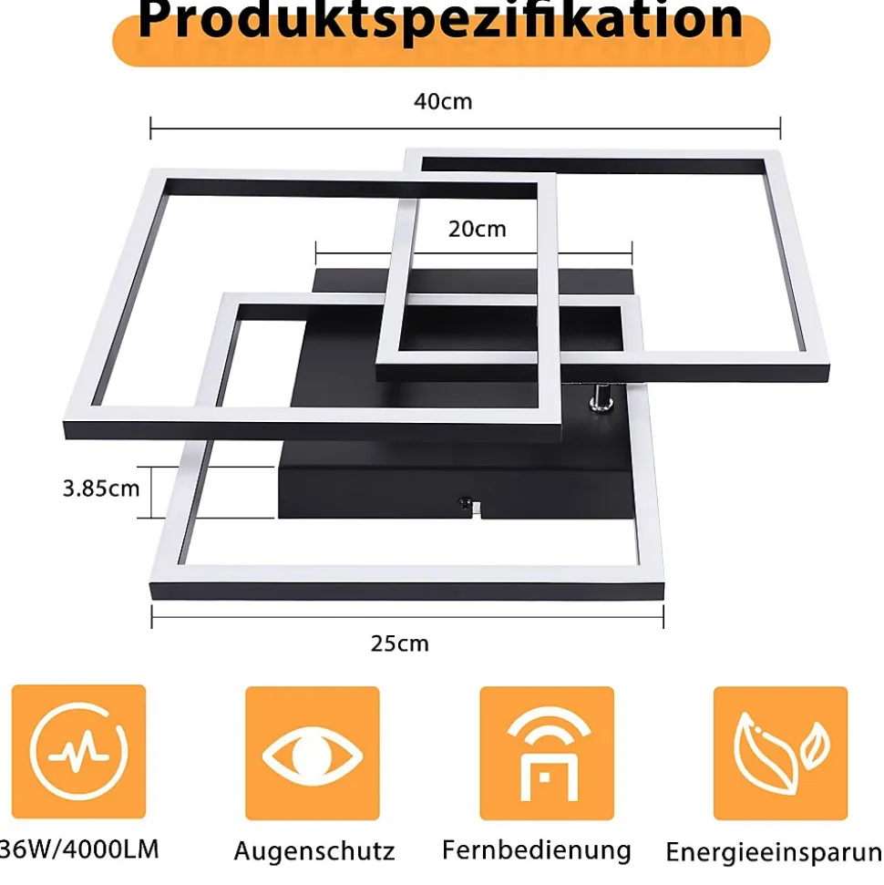 design moderne : le plafonnier led présente un design géométrique composé de 3 éléments lumineux carrés qui se croisent dans une forme élégante et minimaliste. Ce n’est pas seulement une lumière d’intérieur décorative parfaite, mais fournit également un éclairage chaleureux pour votre pièce. Fonction variateur et mémoire : la luminosité (10%-100%) et la température de couleur (3000k-6500k) du plafonnier led peuvent être réglées à l’aide de la télécommande incluse. Grâce à la fonction minuterie, les plafonniers s’éteignent automatiquement 60 secondes avant d’aller se coucher. Et vous pouvez également régler le mode veilleuse (10% de luminosité) pour vous endormir plus rapidement. La fonction mémoire enregistre la dernière température de couleur et la dernière luminosité réglées (plus de 10 s d’arrêt). Efficacité énergétique et protection des yeux : plafonnier carré moderne 36w, 4000lm, plus économe en énergie que les ampoules classiques, avec une longue durée de vie de plus de 20 000 heures. Le rendu des couleurs élevé (cri> 80) assure un meilleur effet visuel, le plafonnier adopte une source de lumière led stable, sans éblouissement et sans scintillement, ce qui peut mieux protéger vos yeux. Large application : ce plafonnier led moderne et élégant est parfait pour une utilisation comme lampe de chambre, lampe de salon, lampe de cuisine. Convient pour un espace de 5 à 20 mètres carrés tel que salon, chambre, salle à manger, cuisine, chambre d’enfants, bureau, salle de jeunesse, etc. La télécommande utilise la technologie de télécommande sans fil 2,4 g, qui est plus sensible. Installation facile : conception d’installation humanisée, l’installation du plafonnier à intensité variable et l’utilisation de la télécommande se trouvent dans le manuel d’instructions dans l’emballage. Si vous rencontrez des problèmes lors de l’installation ou de l’utilisation, veuillez nous contacter, nous résoudrons le problème pour vous dans les plus brefs délais.