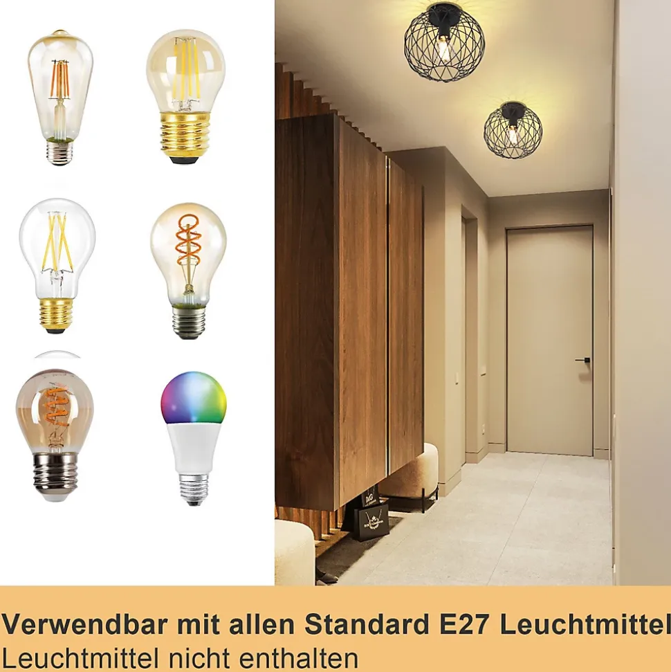 Point fort du design : ce plafonnier avec son design en forme de panier rond en métal apporte une touche rétro-industrielle caractéristique à votre pièce. Le look élégant et rétro de la lampe de chambre est encore renforcé par la surface mate, qui donne à l’ensemble une touche chic.Libre choix de la lampe : Compatible avec les douilles E27 La lampe de salon est livrée sans source lumineuse, ce qui vous donne la liberté de choisir votre type de lampe préféré. Un seul spot de plafond vintage prend en charge jusqu’à 40 W, parfait pour vos besoins d’éclairage individuels.Polyvalent : cette lampe cage est idéale pour décorer une variété de pièces, notamment les couloirs, les salons, les restaurants, les bureaux, les balcons, les cages d’escalier, les greniers, les cuisines, les chambres et les bars, où que vous soyez, les plafonniers créent un espace de vie une atmosphère unique .Facile à installer : avec sa structure simple et ses dimensions de 25*25*19CM, le plafond de lampe industrielle est facile à installer. La lampe de cuisine fonctionne avec l’électricité habituelle de 220-240 V dans la plupart des foyers, ce qui permet une installation rapide et sans trop d’effort.Haute qualité : Robuste et durable Fabriqué en fer avec une surface peinte, ce plafonnier e27 résiste à la corrosion et offre une longue durée de vie. La lampe de couloir est une pièce d’oxydation et une couleur fiables, ce qui en fait un luminaire fiable et durable.