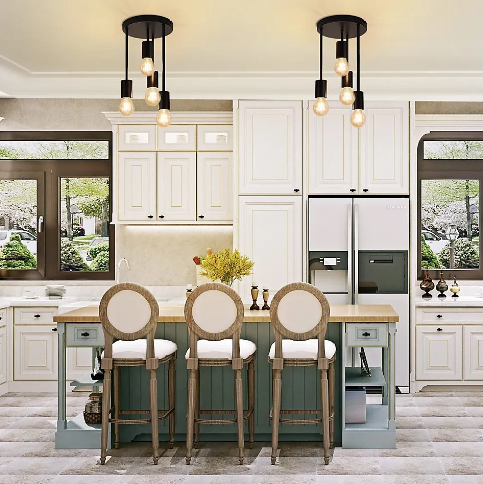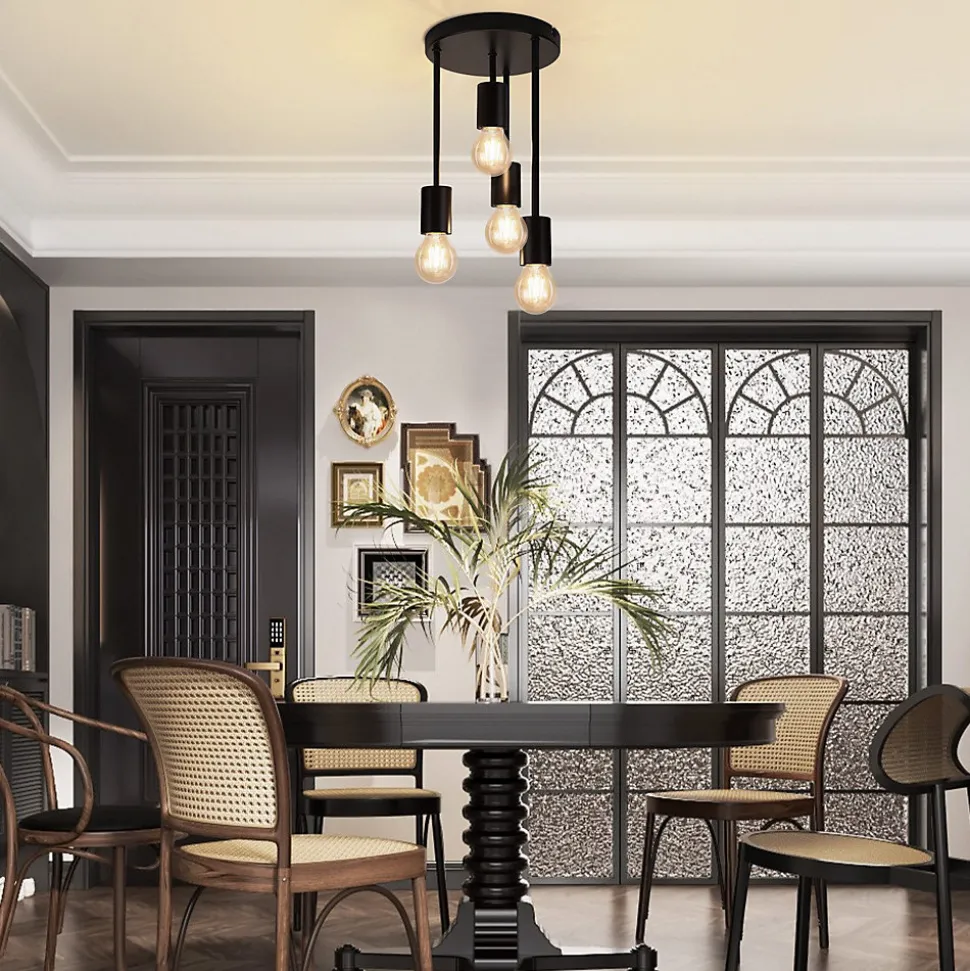 Flexible et pratique : ce plafonnier a 4 longueurs différentes, qui non seulement offrent des lignes visuellement claires, mais élargissent également votre zone d’éclairage. Le cadre en métal noir s’harmonise parfaitement avec le support de plafond noir. Sa préférence pour les couleurs anciennes prend tout son sens, notamment en combinaison avec les ampoules Edison.Design industriel artistique : la lampe de cuisine impressionne par ses matériaux de haute qualité et son aspect exquis. Le noir classique donne à cette lampe de cuisine un look intemporel et élégant. Un savoir-faire précis et des matériaux de haute qualité rendent ce produit particulièrement durable et esthétiqueMatériaux de haute qualité : la douille est en métal, avec une base en métal noir et une conception de peinture en aérosol qui empêche la rouille et facilite l’installation et le nettoyage. Nous veillons à ce que chaque plafonnier soit soigneusement traité pour éviter les arêtes vives, les résidus de matériaux ou les marques de meulageAmpoules E27 remplaçables : cette lampe de salon sans ampoule répond à tous vos besoins de bricolage. Vous pouvez changer les ampoules E27 en fonction de votre style actuel, qu’il soit rétro, moderne, intelligent ou RGB. Qu’il s’agisse d’un style d’ameublement moderne ou antique, cette lampe ajoutera du confort à votre maison. Attention cependant, la puissance maximale par ampoule doit être ≤25WInstallation facile et achat sans souci : le processus d’installation du plafonnier est très simple. Aucun outil ni étape compliquée n’est requis pour terminer rapidement l’installation. Nous vérifions soigneusement chaque lampe avant l’expédition. Si vous avez des questions, n’hésitez pas à nous contacter