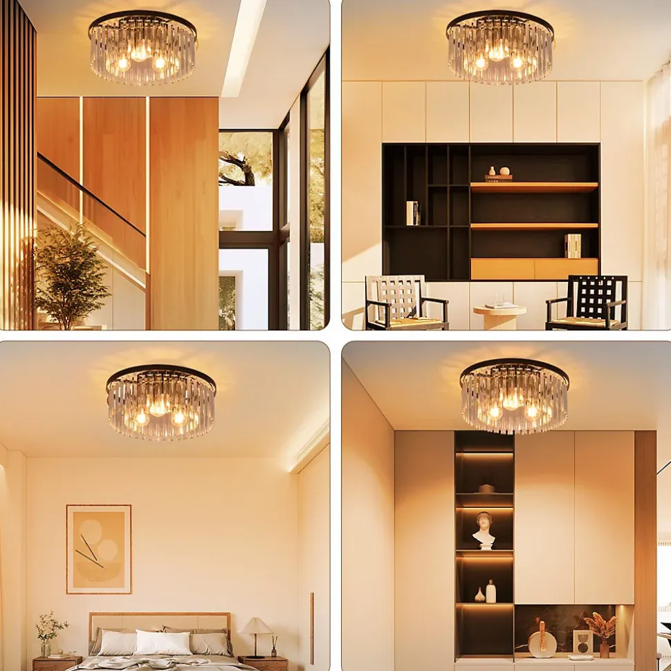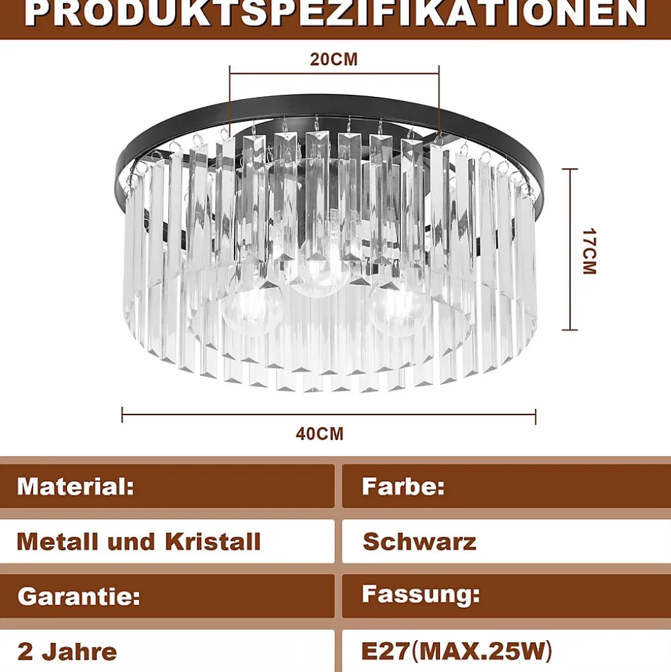 Design : Ce plafonnier de luxe de style moderne montre la simplicité et le style du design moderne avec sa plaque de plafond et son câble à revêtement noir. Chaque plafonnier est livré avec un abat-jour en cristal K9 exquis, un matériau en cristal qui non seulement assure une diffusion de la lumière translucide et uniforme, mais ajoute également une atmosphère raffinée et élégante à toute la pièce.Détails techniques : La lumière elle-même est fournie sans source lumineuse, mais est compatible avec les ampoules E27. Vous pouvez créer un environnement d’éclairage personnalisé en choisissant la bonne ampoule en fonction de vos préférences et de vos besoins d’éclairageMatériau : Ce plafonnier est composé de cristaux K9 soigneusement taillés et polis et d’un matériau en fer durable. Les cristaux améliorent non seulement l’effet de réfraction de la lumière, rendant la lumière plus douce et plus complexe, mais confèrent également au plafonnier une esthétique noble mais simple. De plus, le disque supérieur en fer augmente la stabilité de la structure et la rend plus durableScènes applicables : ce plafonnier a un design simple et moderne, adapté à une variété d’espaces intérieurs, tels que la salle à manger, la cuisine, le bar, le salon, la salle d’étude, la chambre et les espaces commerciaux. Cette lampe peut s’intégrer parfaitement dans différents styles d’intérieurs grâce à son design élégant et répondre à différents besoins d’éclairage.Service client : Vous pouvez retourner ou remplacer nos produits gratuitement dans un délai d’un mois. Si le problème dure plus d’un mois mais moins de deux ans, nous pouvons vous proposer une réparation gratuite. Mais même si cela fait plus de deux ans, chaque fois que vous rencontrez un problème, n’hésitez pas à nous contacter à tout moment. Nous ferons de notre mieux pour résoudre le problème pour vous.