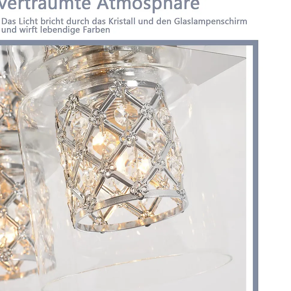 **Conception unique** Ce plafonnier est doté d’un abat-jour en verre transparent décoré de cristaux étincelants. L’interaction du cristal et de la source lumineuse crée un effet visuel luxueux, ajoutant une atmosphère élégante et luxueuse à la pièce.**Culot G9** Équipé d’un culot G9 (source lumineuse non incluse), vous pouvez choisir des ampoules LED, halogènes ou autres pour obtenir différents effets d’éclairage et intensités lumineuses, adaptés à vos besoins.**Matériaux de haute qualité** Fabriqué en métal, verre et cristal, ce plafonnier combine un style moderne et une touche luxueuse. Le métal offre un support stable, le verre un design élégant et les cristaux un effet glamour.**Large applicabilité** Convient à salon, salle à manger, chambre, cuisine, couloir, cage d’escalier, ainsi qu’à des lieux commerciaux comme hôtels, galeries d’art et salles de banquet. Crée une atmosphère chaleureuse et romantique.**Installation facile** Conception du support de plafond facile à fixer, livrée avec instructions claires et accessoires nécessaires. Installation simple : fixez le luminaire au plafond et connectez-le à l’alimentation électrique.