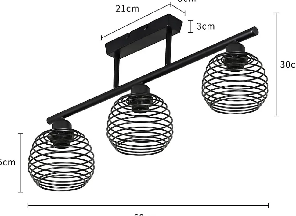 Design rétro : le plafonnier NETTLIFE est équipé d’une douille E27, qui correspond à l’ampoule rétro. Visuellement, le plafonnier industriel allie un caractère industriel à une touche antique. Le charme industriel provient principalement de l’abat-jour en fil métallique, tandis que la finition noire semble non seulement trompeusement réelle, mais procure également de la nostalgie au spectateur.Détails techniques : Dimensions du produit : env. 68x15x30 cm. Dimensions de la plaque de plafond : env. 21x5x3 cm. Ampoule incluse : non. Prise : E27. Puissance maximale de l’ampoule : 25 W. Matériau : fer et plastique. Alimentation et type de prise : électrique filaire. Tension : 230 VDouille E27 standard : la lampe vintage offre une douille E27 et s’adapte aux ampoules E27 normales (max. 25 W). Nous recommandons des ampoules à filament transparent ou rustiques dorées pour compléter le look vintage. PS : ampoule non incluse.Matériau : le corps de la lampe et l’abat-jour de haute qualité sont en fer. La lampe a une finition laquée noire au look satiné. L’effet de lumière est influencé de manière agréable et chaleureuse par la décoration industrielle au caractère vintage.Champ d’application : ce plafonnier de couleur noire est parfait pour une pièce moderne comme lampe de cuisine, lampe de salon, lampe de couloir, lampe de chambre d’enfant, lampe de table à manger, lampe de chambre, etc. Garantie : 2 ans