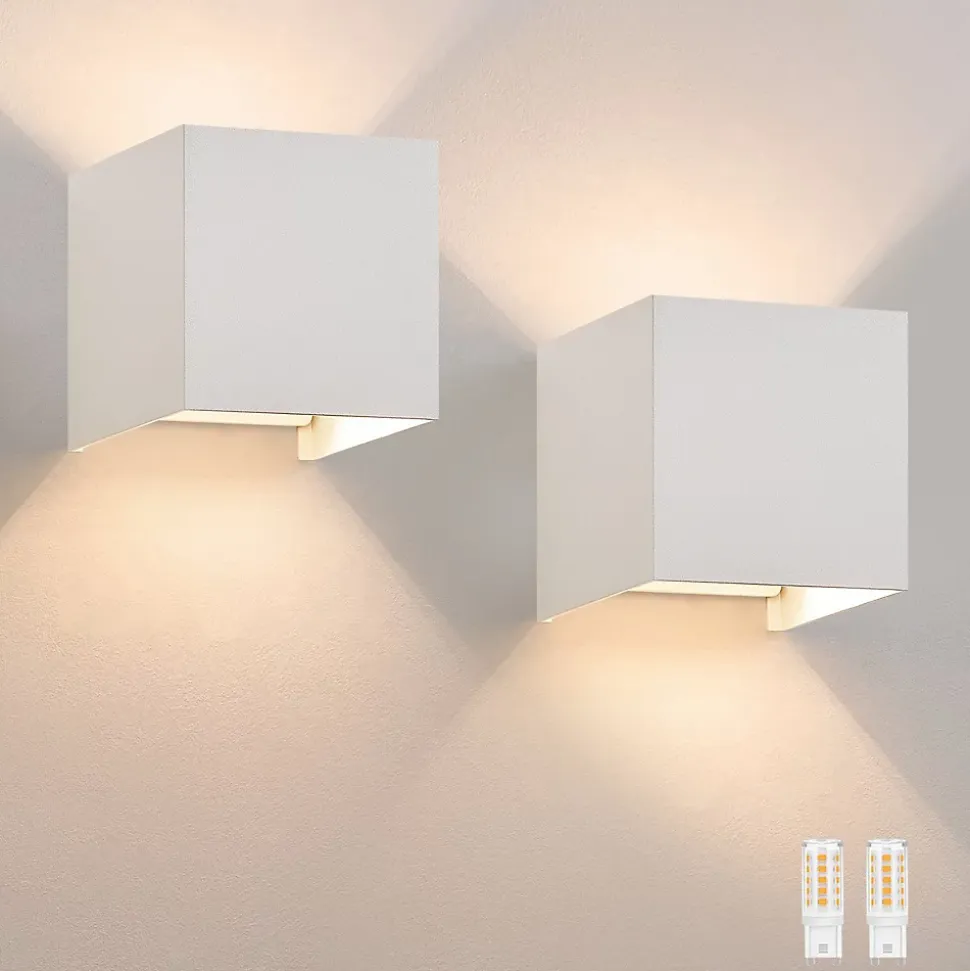 ▧ Étanche IP65 : cette applique murale extérieure est étanche selon la classe de protection IP65 et donc protégée contre les projections d’eau et la pénétration de poussière. Cela signifie que vous pouvez utiliser la lampe murale à l’extérieur sanscrainte, même par mauvais temps comme la pluie ou la neige.✦ Source lumineuse G9 à double tête interchangeable : cette applique murale est équipée de deux sources lumineuses blanc chaud non graduables. Cependant, vous pouvez acheter les sources lumineuses G9 de votre choix pour personnaliser la luminositéet la couleur de la lumière afin de répondre à vos préférences personnelles et à l’évolution de vos besoins en éclairage.❏ Faisceau réglable : cette applique vous permet de régler l’angle de rayonnement en fonction de vos besoins et de l’environnement pour créer des effets d’éclairage flexibles et sur mesure. Adaptez la lumière à vos préférences personnelles et vivezune expérience d’éclairage unique et immersive.▣ Conception UP et Down : grâce à sa conception unique qui diffuse la lumière par le haut et par le bas, des effets lumineux fascinants sont créés pour rendre votre espace extérieur décoratif et visuellement attrayant. Faites briller votre intérieurextérieur et profitez d’une atmosphère détendue.〇 Beau & fonctionnel : l’aspect élégant s’intègre harmonieusement dans les styles d’architecture et de décoration modernes et le métal de haute qualité avec une surface mate est noble et intemporel. Le luminaire s’intègre parfaitement dans différentsenvironnements et peut être utilisé de manière polyvalente. Que ce soit dans le salon, la chambre à coucher ou le bureau, ce luminaire crée toujours une atmosphère agréable et une ambiance élégante.