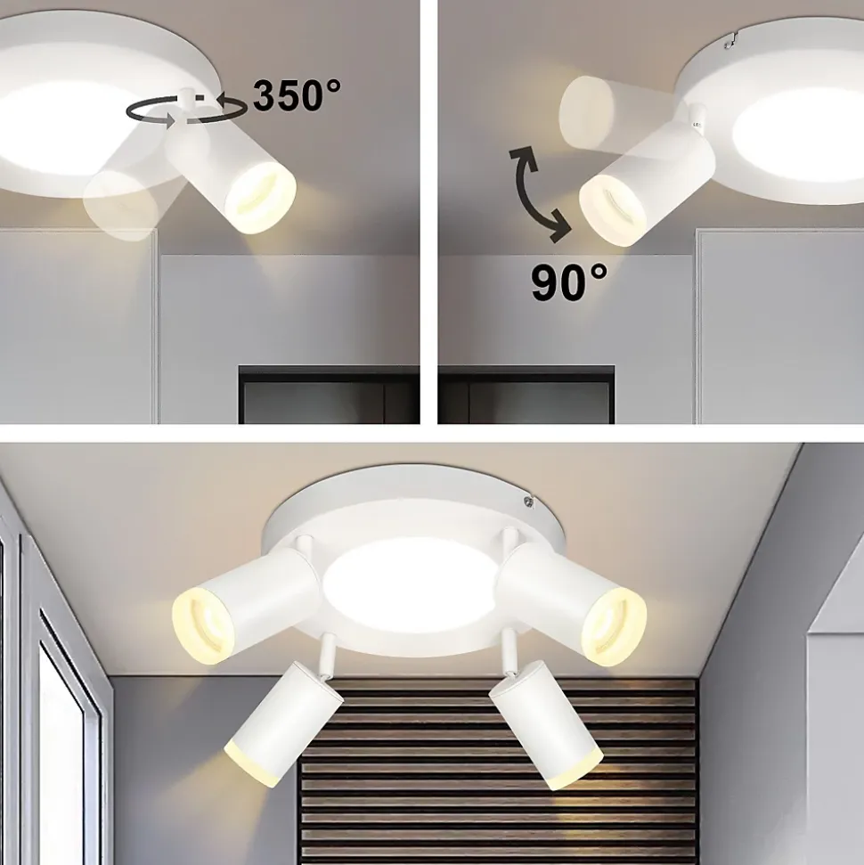 NETTLIFE Spot de plafond 4 ampoules rond 20W 3000K GU10 installation facile blanc chaud orientable moderne