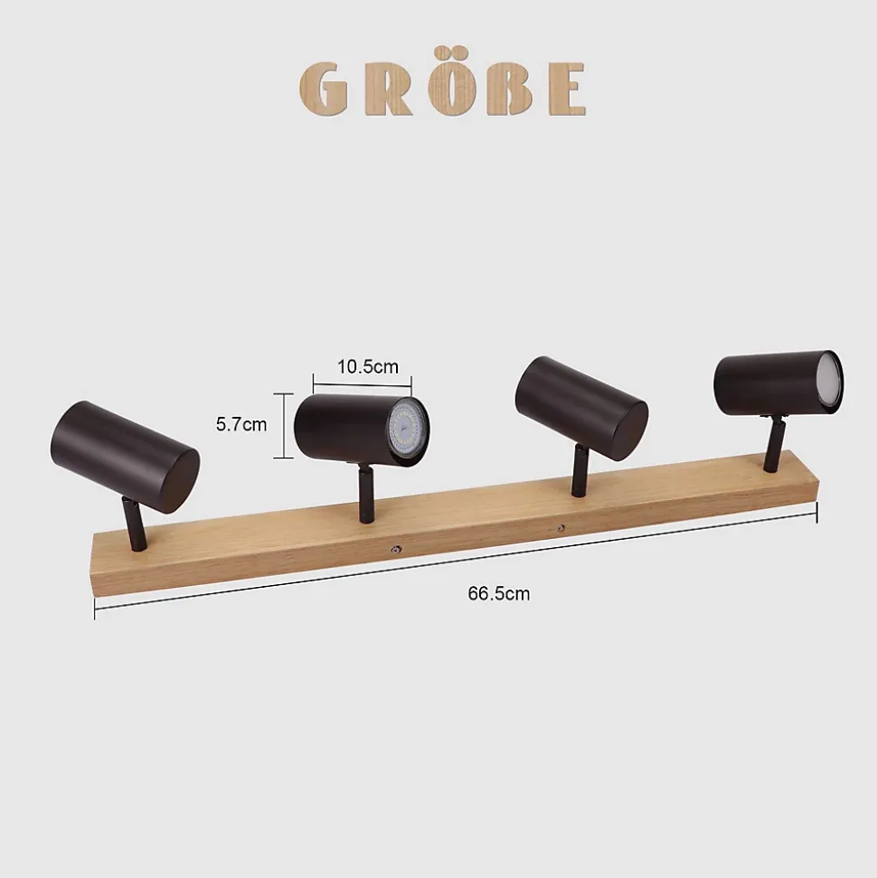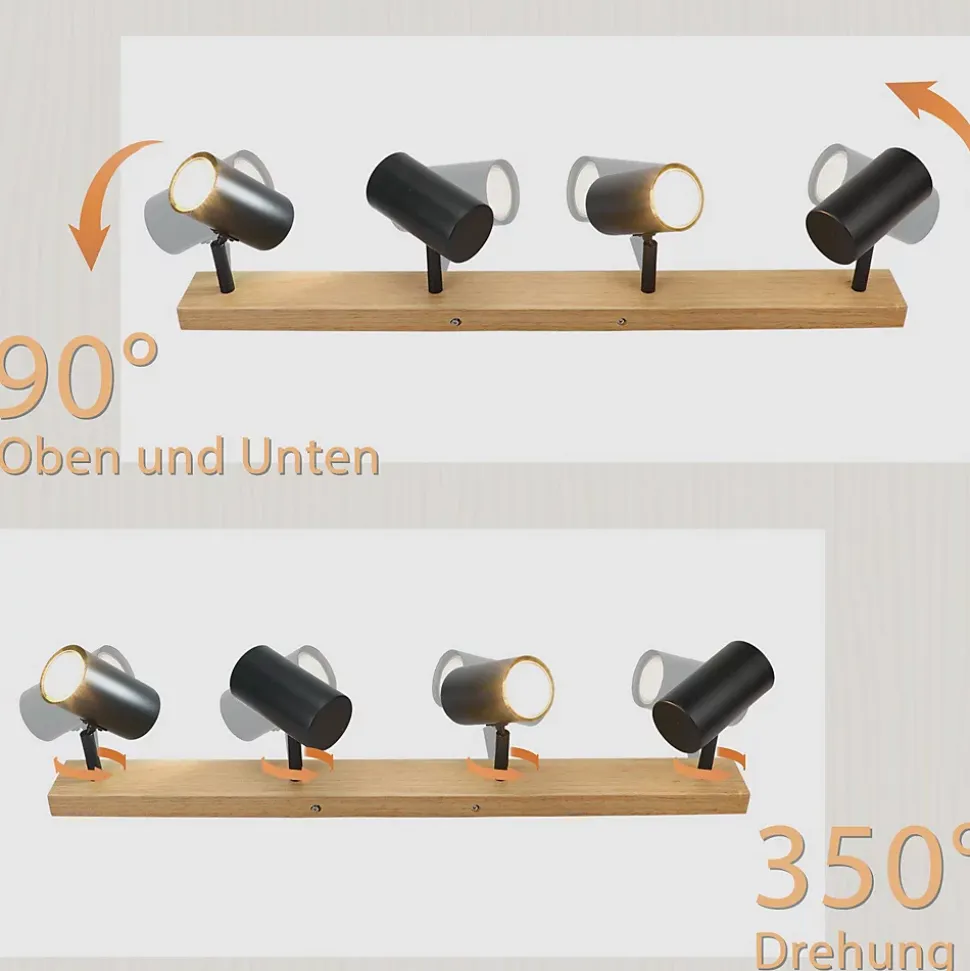 Conception en bois massif : la base de ce spot de plafond en bois à 4 flammes est en bois naturel qui a conservé son grain naturel, et l’abat-jour est en fer robuste. La combinaison vintage du bois et du métal rend ce spot de plafond en bois et métal idéal pour l’espace de vie du client.Très flexible : Cette lampe de couloir GU10 noire peut pivoter librement sur 350°, et comme chaque tête de plafonnier peut être tournée individuellement, vous pouvez ajuster l’angle et la direction en fonction de vos besoins pour éclairer une plus grande zone de la pièce et optimiser l’éclairageUtilisation multi-scènes : le plafonnier vintage au design moderne et minimaliste convient à tous les espaces : salon, chambre, bureau, couloir, balcon, salle à manger, cuisine, salle de bain, etc. Avec un design pivotant pratique, ce spot de plafond peut être utilisé non seulement comme plafonnier, mais également comme applique murale et à d’autres fins d’éclairage.Sans ampoules GU10 : Ce plafonnier orientable utilise un culot de lampe GU10 standard, vous pouvez utiliser différentes ampoules GU10, vous pouvez choisir les ampoules que vous aimez et qui conviennent à l’installation, attention : l’entrepôt ne contient pas d’ampoules ni de ventouses dans le Livraison. La puissance des ampoules individuelles ne peut excéder 25WInstallation facile : cette lampe de salon est livrée avec des instructions d’installation détaillées. Tout ce que vous avez à faire est de suivre les étapes guidées pour faciliter l’installation
