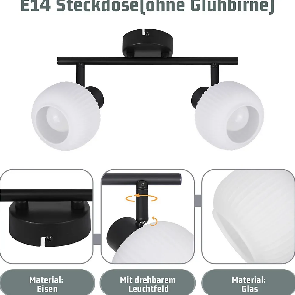 [Design polyvalent pour les intérieurs modernes et vintage] Ce spot de plafond E14 se distingue par son design polyvalent et s’intègre parfaitement dans les intérieurs modernes et vintage, offrant ainsi des possibilités infinies d’éclairage à votre maison. Son design minimaliste et sa finition soignée permettent à ce spot de s’intégrer dans les lignes claires des appartements modernes et de souligner le charme unique des pièces vintage.[Douille E14] Cette ampoule est équipée d’une douille E14, vous pouvez donc choisir librement différents types de lampes pour répondre aux besoins d’éclairage individuels et créer différentes atmosphères. Attention : notre produit ne contient pas d’ampoules.[Assemblage facile] L’ampoule E14 a un design simple et est facile à assembler. Il est parfait pour une installation dans le salon, la salle à manger, la chambre, le bureau et bien d’autres pièces pour ajouter de l’individualité et du style à votre maison.[Détails techniques] Taille du corps de la lampe : 28*10*17, 5 cm ; Source de lumière : E14*2 (source de lumière non incluse) ; Puissance : max. 25 W ; Tension : 220-240 VAC ; Matériau : fer + verre ; Angle de pivotement : haut et bas 90°, 350° gauche et droite, rotation 330° de la tige principale[Garantie d’achat] Si vous avez des questions, des suggestions, des doutes ou des préoccupations, n’hésitez pas à nous contacter. Nous vous répondrons dans les 24 heures et résoudrons le problème dans les plus brefs délais: