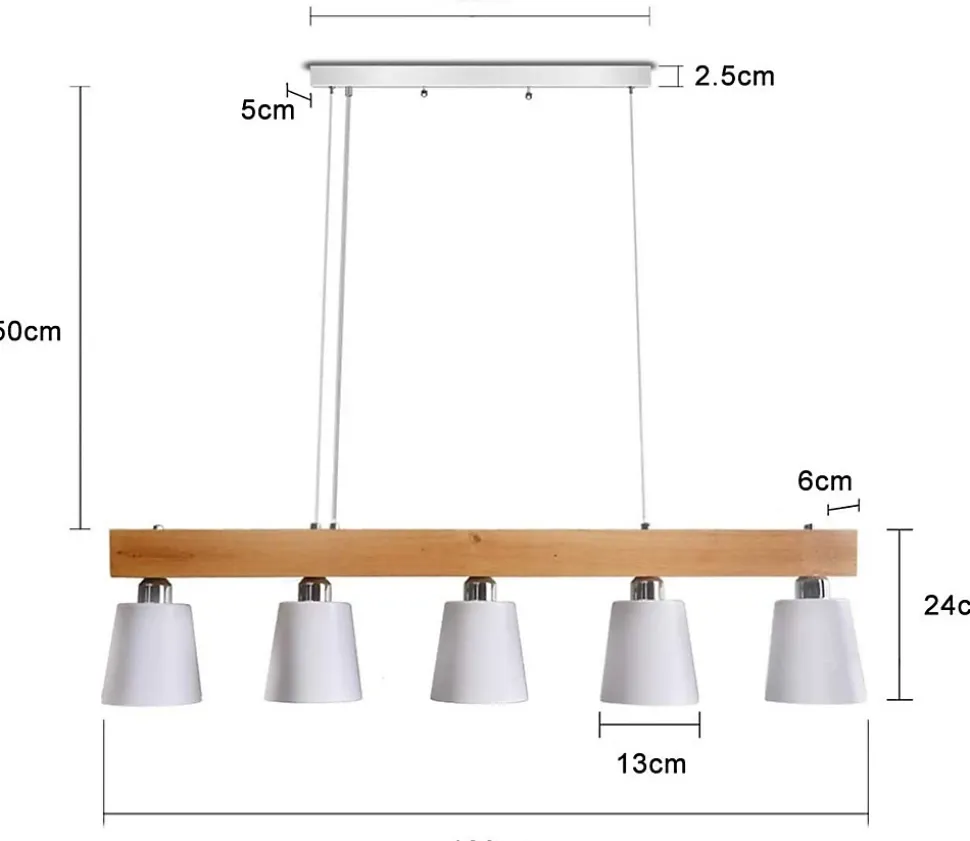 Design : la suspension impressionne par sa combinaison unique d’abat-jour en bois véritable et en métal. La beauté naturelle du bois donne à n’importe quelle pièce une atmosphère chaleureuse, tandis que les abat-jour en métal ajoutent une touche moderne. La lumière brille directement vers le bas, ce qui est parfait pour éclairer de manière optimale une longue table à manger et créer un environnement accueillant.Dimensions : Avec ses dimensions généreuses de 102 x 24 x 13 cm (L x l x H), cette suspension est idéale pour les pièces de taille moyenne à grande. Le câble peut être ajusté jusqu’à une longueur maximale de 150 cm pour permettre un placement flexible sur différentes surfaces. La finition de haute qualité en bois et en métal garantit une durabilité et un aspect élégant. L’installation est simple et simple grâce à une conception bien pensée.Ampoules adaptées : ce produit nécessite cinq ampoules E27 adaptées d’une puissance maximale de 25 watts chacune. Ces ampoules fournissent un éclairage d’ambiance agréable à votre pièce et peuvent être réglées individuellement.Réglage de la hauteur : la suspension peut être ajustée selon vos préférences personnelles dans une longueur de suspension allant jusqu’à 150 cm. Cela vous permet de régler la hauteur de la lampe et ainsi de diriger la lumière de manière optimale vers la zone souhaitée.Application : cette suspension est polyvalente et convient parfaitement aux pièces modernes telles que les bureaux, les salles d’étude, les salles à manger et bien plus encore. Son design moderne lui permet de s’intégrer parfaitement à différents styles d’intérieur et d’ajouter une touche d’élégance à n’importe quelle pièce. Avec une garantie de 2 ans, vous pouvez également compter sur la qualité et la durabilité de ce produit. Avec cette suspension, vous créez non seulement un éclairage agréable, mais aussi une ambiance élégante dans votre maison ou votre bureau.