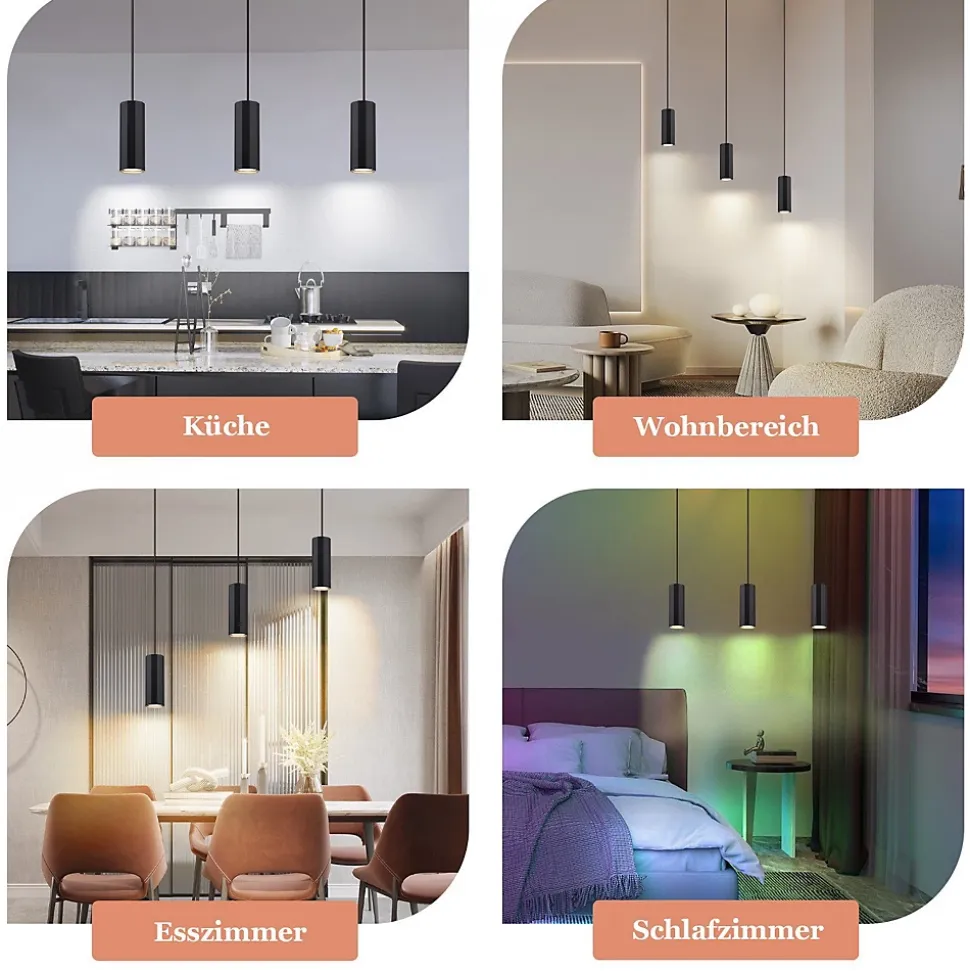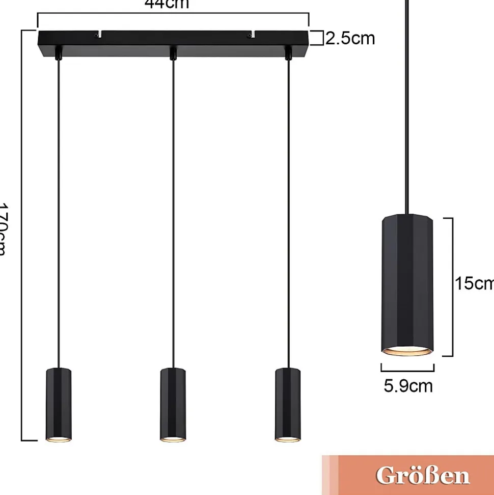 NETTLIFE Suspension métal noir diamètre 44 cm GU10 3 ampoules salon moderne industriel pour intérieur