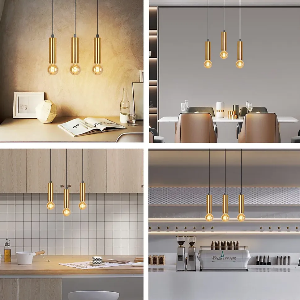 【Conception de support de lampe long】 Le support de lampe de cette suspension LED est combiné avec une longue forme cylindrique, qui est belle et exquise. L’ampoule de la suspension de cuisine est exposée vers l’extérieur, sans être limitée par l’abat-jour, ce qui contribue à élargir la zone d’éclairage et à diriger la lumière de manière uniforme.【Douille E27 standard】 La lampe de table à manger suspendue interne convient à toutes les ampoules E27. Tels que le blanc chaud, le blanc froid, le RVB, la luminosité réglable. Vous pouvez choisir des ampoules LED à économie d’énergie selon vos besoins ou utiliser des ampoules RVB pour créer une ambiance. Attention : notre suspension de style industriel ne contient aucune ampoule. La puissance maximale de la lampe de table à manger est de 25W.【Matériau métallique de haute qualité】 Cette lampe de salle à manger est en métal et peinte en or, ce qui ne rouille pas facilement. Les lignes élégantes et délicates créent une atmosphère merveilleuse, tandis que les suspensions de couloir remplissent votre pièce d’une touche artistique.【Facile à installer】 La suspension cylindrique est livrée avec des dessins, ce qui la rend très facile à assembler. Les lampes suspendues dorées et noires conviennent à divers scénarios d’application, notamment les restaurants, les cuisines, les chambres, les salons et les couloirs. Les lignes exquises présentent parfaitement le style industriel, faisant de cette suspension de salon le choix parfait pour la décoration de la maison et l’éclairage commercial.【Hauteur réglable】 La hauteur du câble de la lampe suspendue en métal peut être ajustée et la longueur peut être ajustée selon vos besoins. La lampe de table à manger peut se fondre parfaitement avec n’importe quel plafond. Remarque : en raison de l’espace limité entre la base de la suspension de la table à manger et le plafond, la longueur du cordon d’alimentation doit être coupée lors du réglage d’une grande surface.