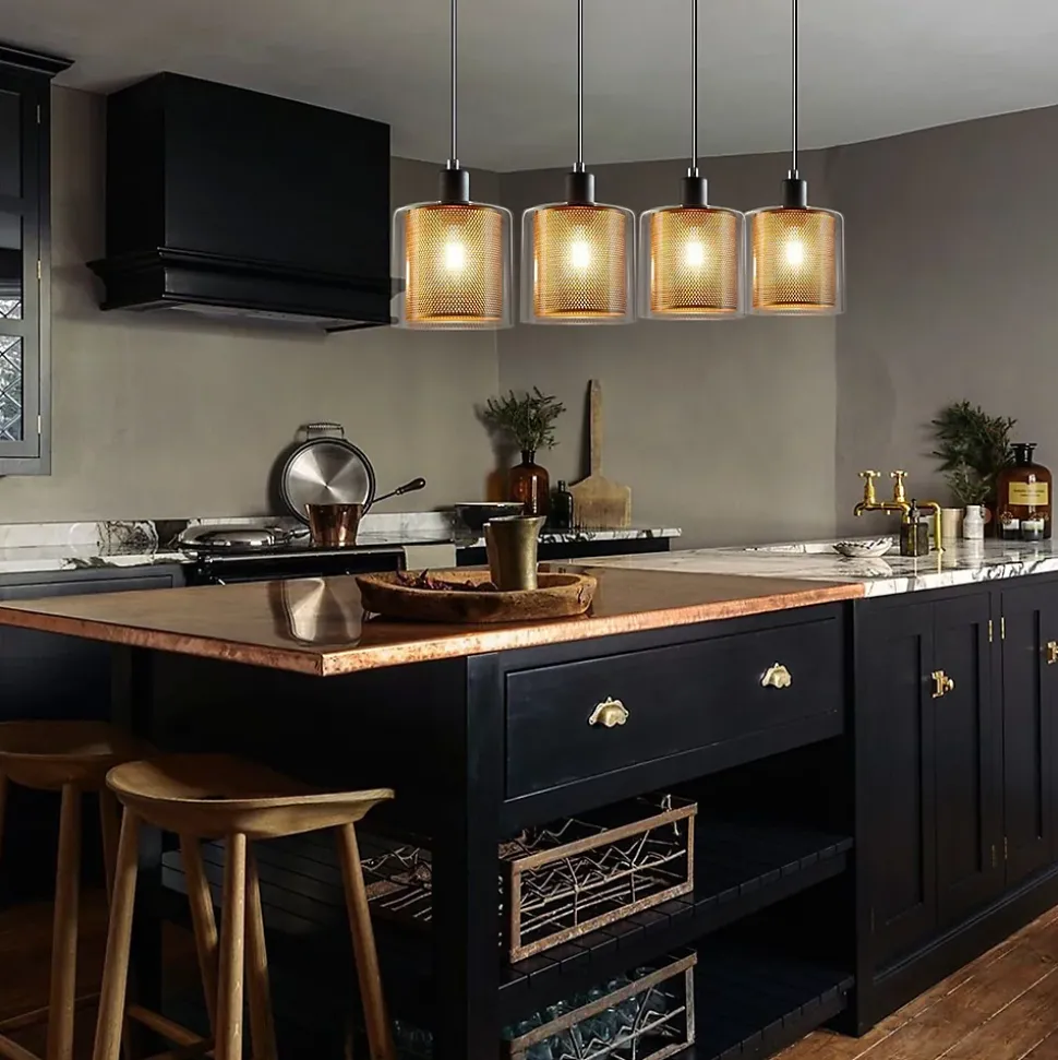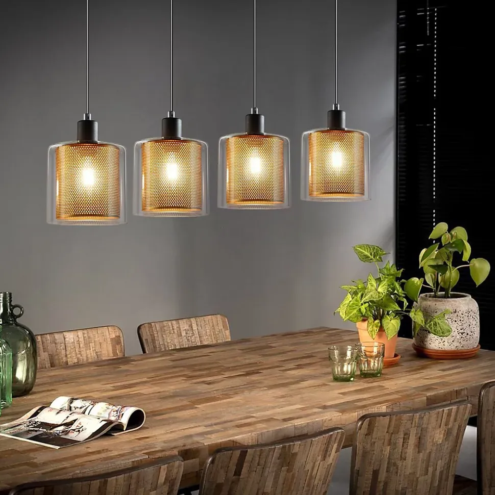 [Design] La suspension et la douille de la suspension ont été peintes en noir, et le câble est également noir. L’abat-jour à deux couches fait de la suspension un accroche-regard décoratif.[Dimensions] 18 x 13 x 150 cm (L x l x H) ; Support de plafond 12 x 12 x 2,5 cm (L x l x H) ; Diamètre du parasol (intérieur) 11 cm, diamètre de l’abat-jour (extérieur) 13 cm, hauteur 16 cm.[Hauteur réglable] réglable en hauteur librement avant et après le montage jusqu’à 150 cm. Son design unique attirera tous les regards.[Matériau] L’abat-jour intérieur est constitué d’un treillis métallique doré, tandis que l’abat-jour extérieur est en verre transparent.[Application] Cette suspension facile à installer est parfaite dans la salle à manger, le salon, la chambre, le café ou l’espace de travail commercial ainsi qu’à suspendre.: