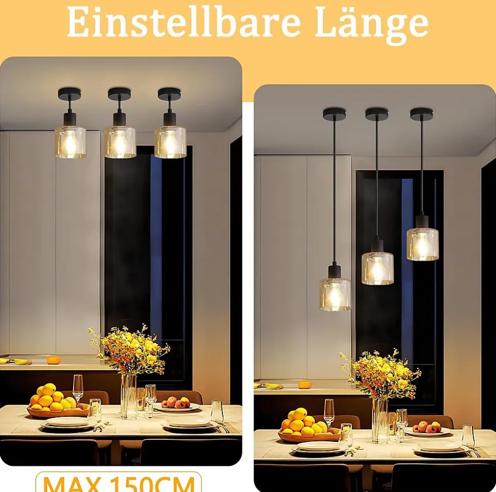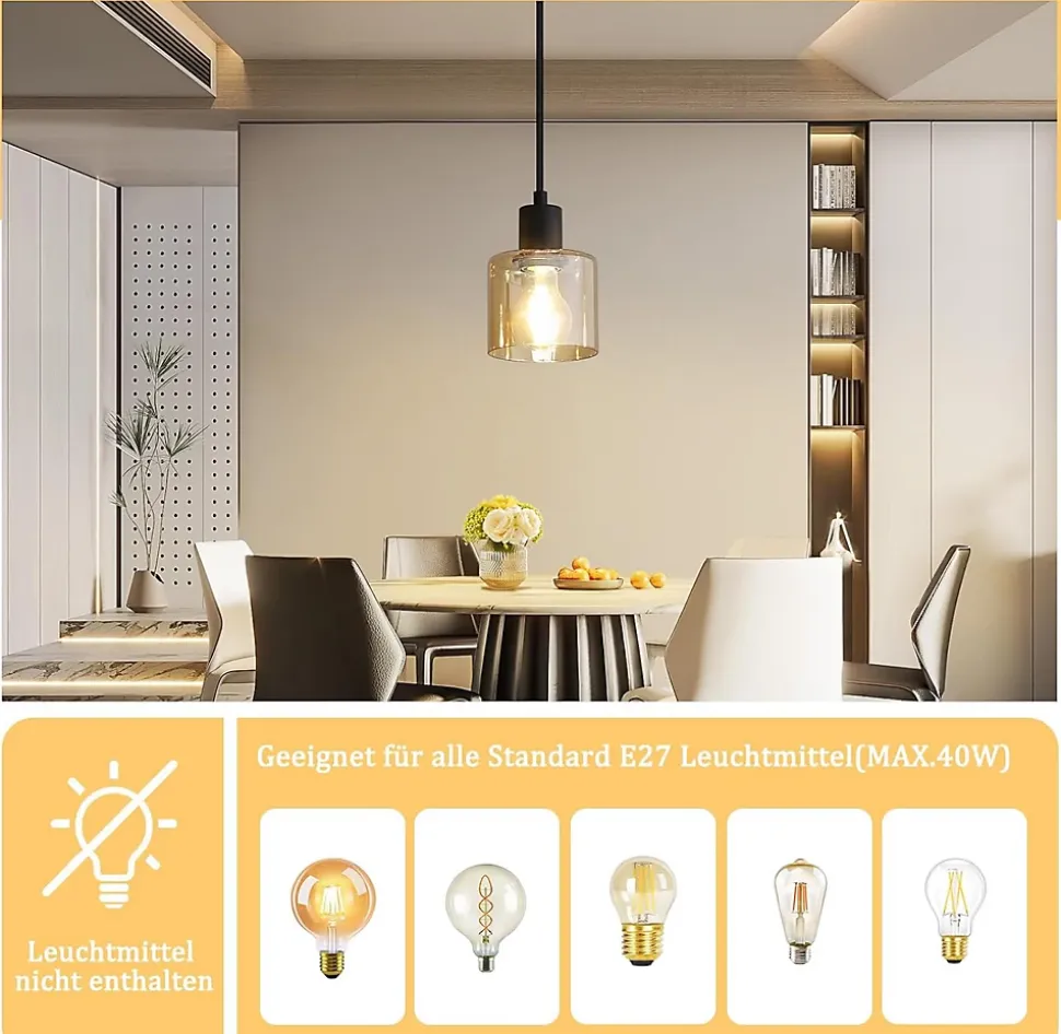 Suspension Vintage en Verre et Fer avec Abat-jour TranslucideDesign VintageCette suspension se distingue par sa plaque de plafond et son câble noirs, qui soulignent son style vintage. L’abat-jour translucide diffuse la lumière de manière uniforme, créant un effet décoratif unique. Associée à une ampoule vintage en fibre de carbone, elle devient un accent artistique dans votre intérieur.Matériau RobusteLa suspension est composée de verre élégant et de fer robuste. Le verre apporte une touche de sophistication, tandis que la plaque de plafond en fer assure une stabilité et une durabilité maximales. Le fer soigneusement travaillé renforce le style industriel et le charme vintage de la suspension.Détails TechniquesDimensions : 11 x 11 x 170 cmLongueur Réglable : De 0 à 150 cm pour une adaptation parfaite à vos besoins.Douille : E27 (ampoule non incluse). Choisissez l’ampoule qui correspond à vos préférences pour obtenir l’éclairage souhaité.Applications PolyvalentesCette suspension vintage convient à une variété de scénarios, y compris les salles à manger, les salons, les chambres, les salles d’étude et les cafés. Son design élégant et sa lumière douce offrent une expérience visuelle agréable, que vous soyez seul ou en compagnie d’amis.Service ClientLes produits peuvent subir des chocs lors du transport, occasionnant parfois des dommages comme des bris de verre. Si vous rencontrez des problèmes lors de la réception du produit, n’hésitez pas à nous contacter. Notre équipe de service client est toujours disponible pour vous aider.
