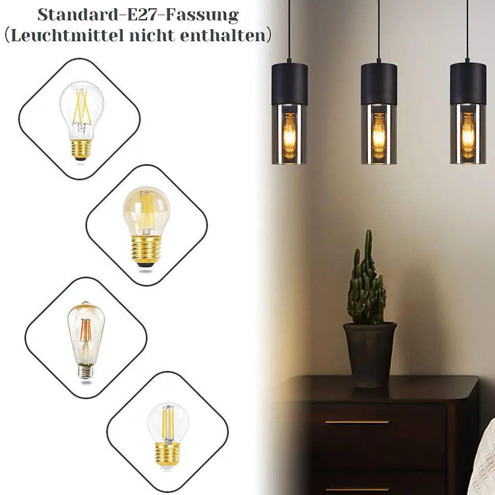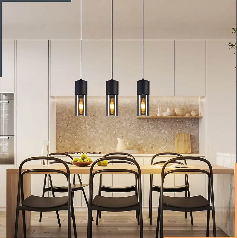 【Design industriel moderne】 Cette suspension industrielle en verre comprend une tête E27 noire et un abat-jour cylindrique, son design simple et généreux peut créer un environnement intérieur chaleureux et magnifique pour votre pièce.【Éclairage DIY】 La lampe suspendue pour table à manger peut être facilement ajustée (10 cm à 150 cm) pour répondre aux différents besoins de la pièce et offrir une bonne expérience d’éclairage. Matériau : fer et verre, douille E27. Avec revêtement noir classique.【Convient à de nombreuses scènes】 La suspension au design géométrique convient à la cuisine, à la salle à manger, au couloir, au café, au club, au bar, au magasin, etc. Le lustre abat-jour crée un bel effet de lumière et de rendu au plafond.Source de lumière interchangeable : cette suspension noire est livrée avec une douille E27, compatible avec différents types de sources lumineuses E27 jusqu’à 25 watts. Vous pouvez choisir des ampoules LED/ampoules Edison/ampoules halogènes/ampoules Wi-Fi selon vos besoins.【Installation facile】 Cette suspension de salon est livrée avec des accessoires complets et est livrée avec des instructions et toutes les pièces d’installation. Si vous avez des questions, n’hésitez pas à nous contacter.