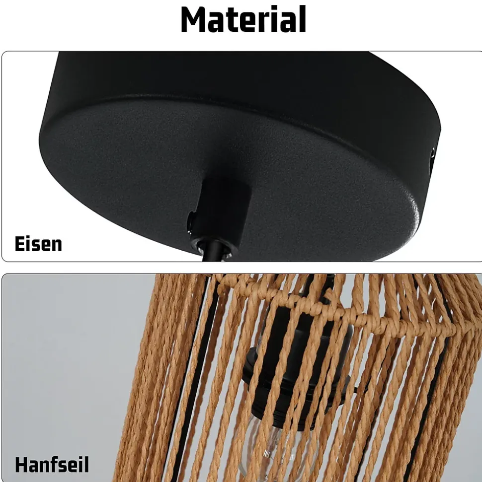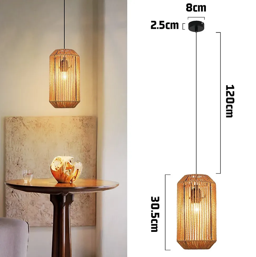 Conception unique : ce lustre est un long design tissé en forme de lanterne, qui a non seulement un effet visuel unique, mais également une bonne perméabilité à l’air, qui peut filtrer efficacement la lumière et créer une atmosphère chaleureuse.Détails techniques : taille : 16 cm x 16 cm x 154,5 cm, longueur du corps de la lampe : 30,5 cm, longueur du support de plafond : 8 cm, longueur de la corde de suspension : 120 cm ; Ampoule : E27*1 (ampoules non incluses), puissance : maximum 40 W ; Tension : 230 VMatériau : fabriqué en fer et corde de chanvre, combiné avec une combinaison de couleurs noir et curry clair, il présente un style rétro et convient à une variété de scènes d’intérieur.Facile à installer : ce lustre est facile à installer, vous n’avez besoin d’aucun outil compliqué, juste quelques étapes simples pour terminer l’installation, afin que vous puissiez facilement créer un environnement d’éclairage de style rétroScènes largement applicables : le lustre en forme de lanterne convient à une variété de scènes intérieures, qu’il s’agisse d’une chambre, d’une table de chevet, d’un couloir, d’une table à manger, d’un bureau ou d’un restaurant, peut ajouter une touche de charme vintage à votre pièce, une ambiance chaleureuse et pour créer une ambiance cosy