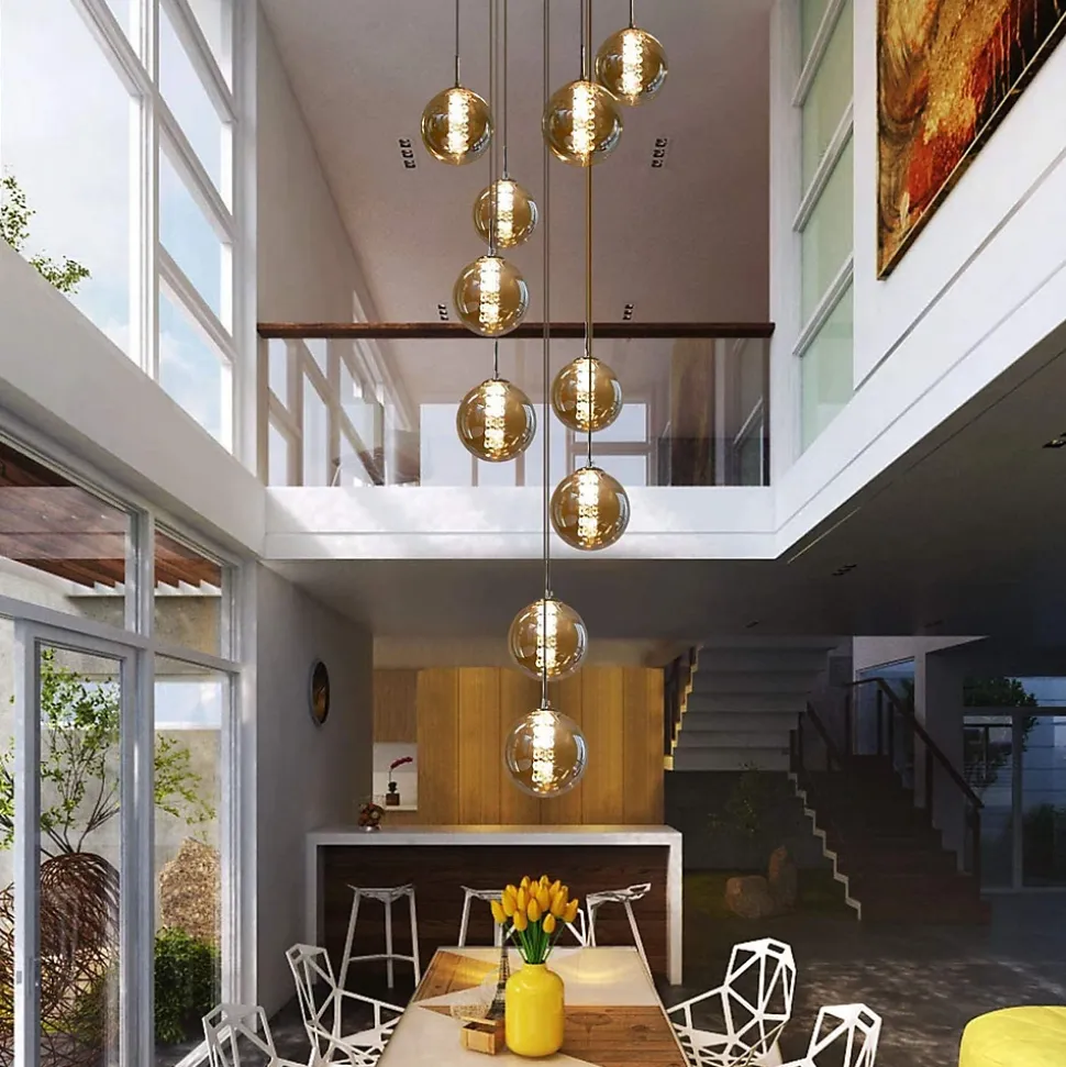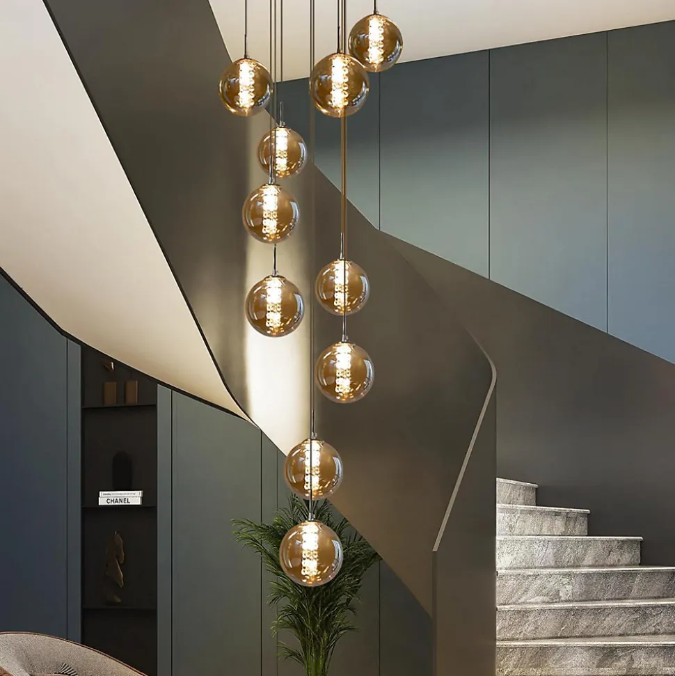 Design élégant : lustre en verre en forme de boule dans le style loft moderne et maison de campagne, convient à tous les styles d’aménagement, crée l’ambiance adéquate dans la pièceDimensions du produit : Diamètre ø15 cm (chaque boule de couleur grise), la dimension de la plaque de plafond : Φ41 * 3.5 cm, tension : 220-240 V, longueur du câble : 2 mRéglable en hauteur : suspension élégante avec un corps de lampe en verre de haute qualité. La plus longue suspension est de 2 m. Si nécessaire, la hauteur de la lampe suspendue peut être réglée de 80 cm à 200 cm, particulièrement adaptée aux cages d’escalier ou aux bâtiments publics.Éclairage unique : les abat-jour en verre suspendus à des fils de différentes longueurs créent une esthétique étagée d’une beauté enchanteresse.Des options supplémentaires : Si vous avez besoin de fixations supplémentaires au plafond, suspendues ou carrées, le délai est d’environ 100 jours.