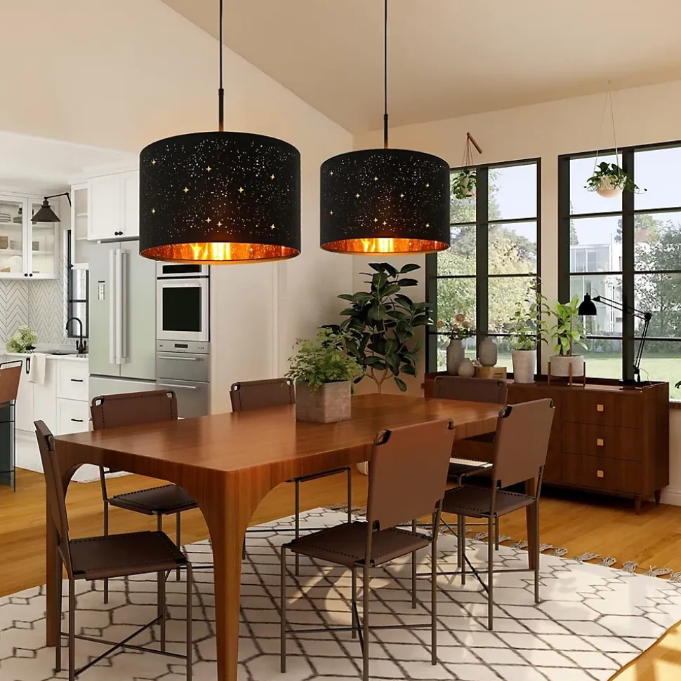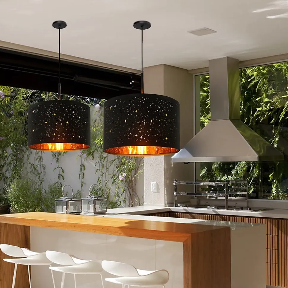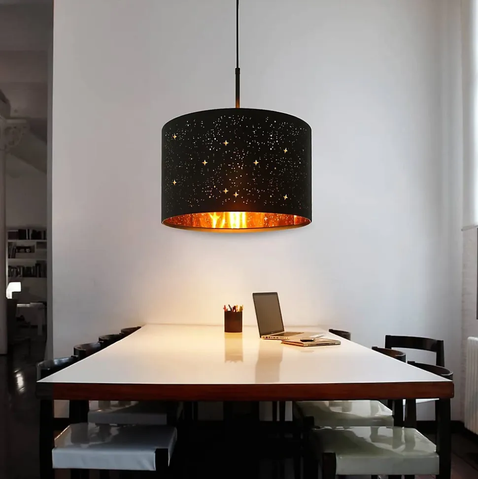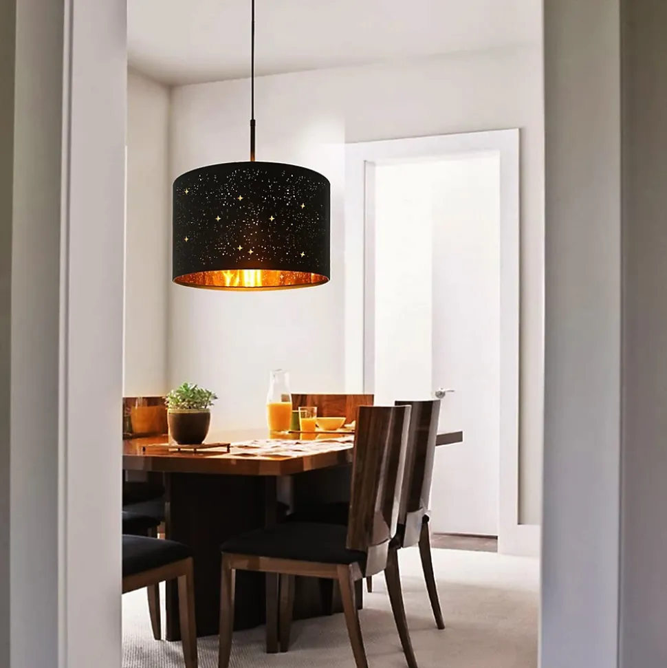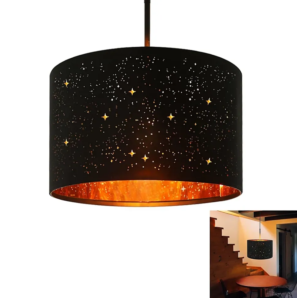 【Conception d’abat-jour en tissu ciel étoilé】 – L’abat-jour ciel étoilé unique, tissu noir à l’extérieur, revêtement doré à l’intérieur et avec le design creux, bien sûr idéal. Cette suspension suit les normes du design dans sa conception, mais son look semble néanmoins assez intemporel.【Ampoule adaptable】 -Douille E27 – La lampe suspendue vintage offre une douille E27 et s’adapte aux ampoules E27 normales (max. 40W). Attention, ce plafonnier industriel est livré sans ampoule. Ce produit est un produit accessoire qui contient une ampoule avec une cote d’efficacité énergétique de [Insérer la lettre d’évaluation]. Les produits d’éclairage accessoires peuvent être démontés pour vérifier séparément la source de lumière incluse.【Dimensions du produit】- La taille de l’abat-jour Ø38*H24cm CM. La couleur noire; Tension : 230 V. Avec sa suspension de 106,5cm de long, la pièce moderne est particulièrement adaptée aux hauts plafonds.【Application】 – Le parapluie est entièrement fabriqué en tissu blanc de forme cylindrique. La suspension en tissu peut donc être utilisée de manière particulièrement diversifiée, qui s’applique non seulement à différents styles, mais aussi aux chambres, salles à manger, chambres de bébé, auberges. Éclairage de chambre à coucher, éclairage de couloir, lampe pour enfants ou éclairage de table à manger.【Service client】 – Pour tout problème, suggestion, question ou préoccupation. Veuillez nous contacter d’abord, nous vous répondrons dans les 24 heures et résoudrons le problème dans les plus brefs délais. GARANTIE : 2 ANS