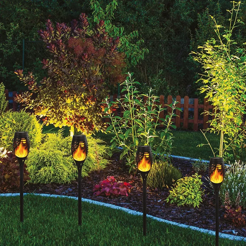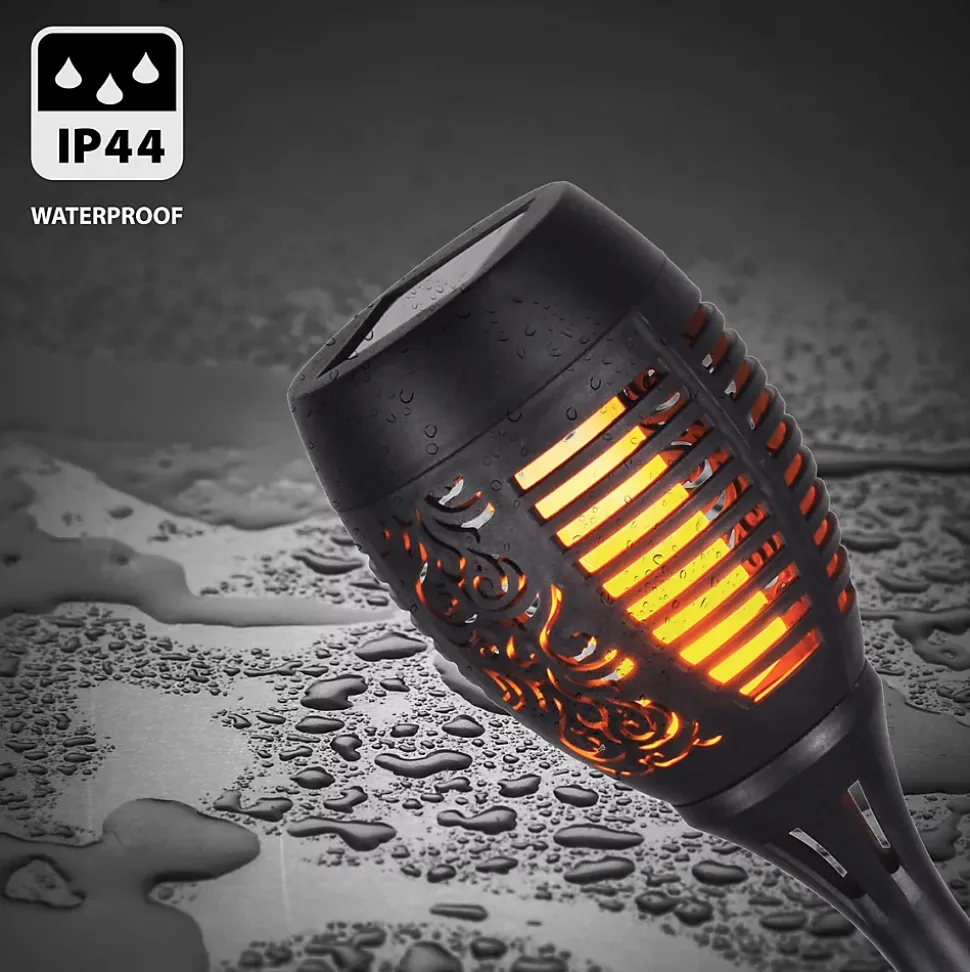 Lampe solaire avec effet flamme : cette lampe solaire à effet flamme est une alternative sûre aux vraies torches et bougies. Ne risquez pas de vous brûler ! Offre une parfaite atmosphère chaleureuse à votre jardin, fête, barbecue et camping. Hauteur : 51 cm, diamètre flamme: 7,5 cm. Lumière solaire : cette lampe effet flamme se recharge le jour avec l’énergie solaire et s’allume automatiquement la nuit. La batterie contenue dans la lampe est alimentée par l’énergie solaire. Il est recommandé de l’installer dans des zones particulièrement ensoleillées afin de recharger les batteries au maximum de leur capacité et de profiter d’un spectacle unique la nuit ! Longue durée : la batterie Ni-Mh rechargeable intégrée est haute capacité (200 mAh) et permet à la lampe de s’illuminer jusqu’à 5 heures en été (après la recharge complète). Temps de charge : 6-8 heures par jour de soleil. Installation facile : aucun câblage nécessaire. Il est possible d’installer les lumières solaires sur le gazon, dans les ailes, les sentiers, mais aussi vases, terrasses… partout. La torche solaire imperméable IP44 avec flamme dansante a été conçue pour résister à toutes les conditions atmosphériques. Evitent l’utilisation d’électricité provenant de sources non renouvelables et polluantes.
