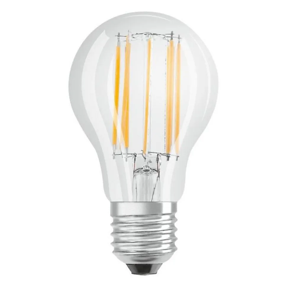 Ampoule LED OSRAM Standard clair filament 11W100 E27 blanc froid, luminosité 1521 lm équivalente à 100W classique, économie d’énergie (11W seulement), durée de vie 15 000 h, design rétro, culot E27 universel, garanties 2 ans.