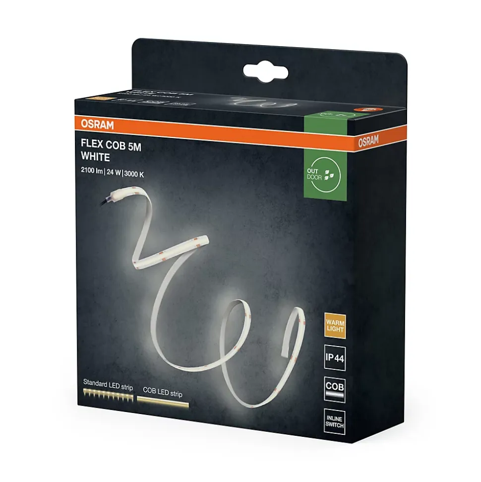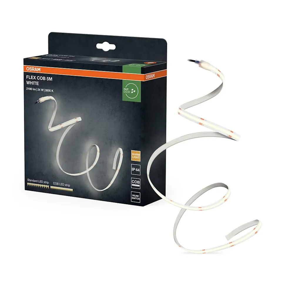 - LUMIÈRE AGRÉABLE : Bande LED décorative d’une longueur de 5 m pour l’extérieur avec couleur de lumière blanc chaud, éclairage homogène et technologie COB.