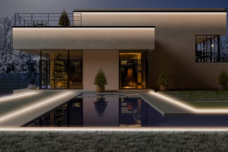 Bandes LED décoratives pour extérieur avec effet lumineux homogène, IP44. Caractéristiques du produit: Technologie COB pour une répartition homogène de la lumière. Couleur de lumière: blanc chaud. Bandes flexibles, pliables LED. Type de protection : IP44. Avantages du produit: Installation facile et rapide. Distribution lumineuse homogène. Eclairage homogène grâce au COB LED . Zones d’application: Applications extérieures. Eclairage indirect. Technique / Accessoires: Accessoires de montage et de connexion complets fournis. Conseils de sécurité: Afin de réduire le risque d’étranglement, le câblage flexible connecté à ce luminaire doit être fixé efficacement au mur si le câblage est à portée de main.. Ne pas brancher le cordon lumineux sur l’alimentation lorsqu’il est enroulé sur une bobine. Ne pas utiliser le ruban lumineux lorsqu’il est recouvert ou encastré dans une surface. Le cordon lumineux ne doit pas être utilisé dans son emballage. Ne pas ouvrir le ruban lumineux.. Vérifiez l’adéquation du mur et du plafond. En cas de doute, demandez conseil à un professionnel..
