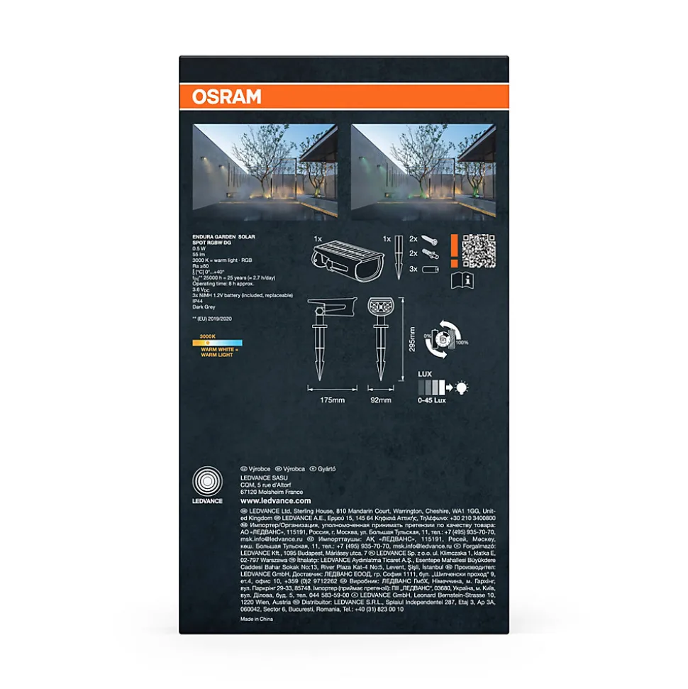 - Résistant aux intempéries : boîtier robuste en polycarbonate avec protection IP44 ; Antichoc selon IK03 pour une utilisation durable sous la pluie et la poussière
