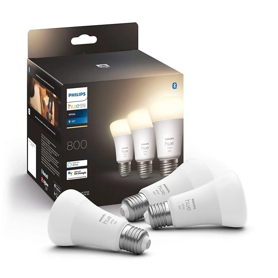 Pack 3 ampoules LED connecté Philips Hue Bluetooth A60 E27 880lm 9W 60W blanc chaud