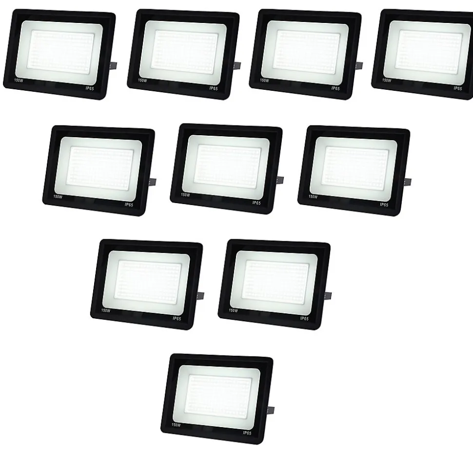 Pack de 10 Projecteurs LED Extérieur 150W Lumière Froide 6000K 15750lm IP65 Angle 120 Support Réglable Aluminium