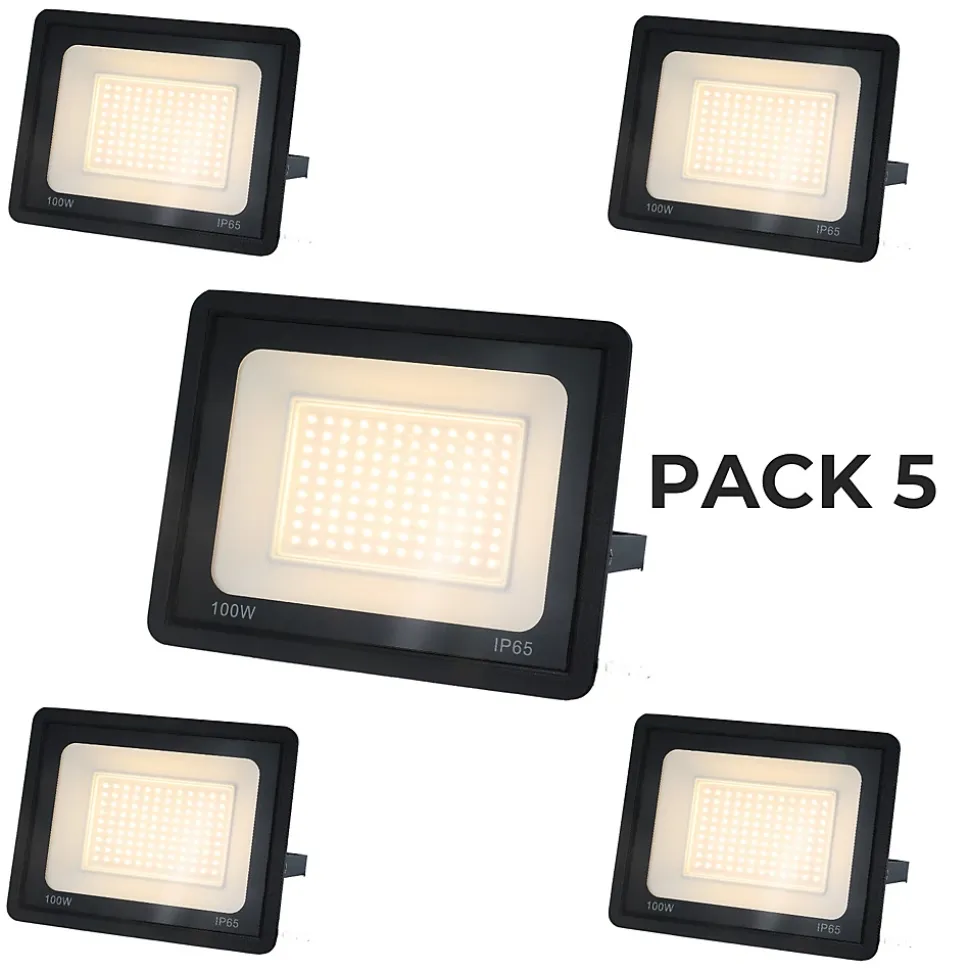 Pack de 5 Projecteur LED Extérieur IP65 Imperméable 100W 9500Lm 3000K Lumière Chaude pour Maison Garage Jardin Terrasse