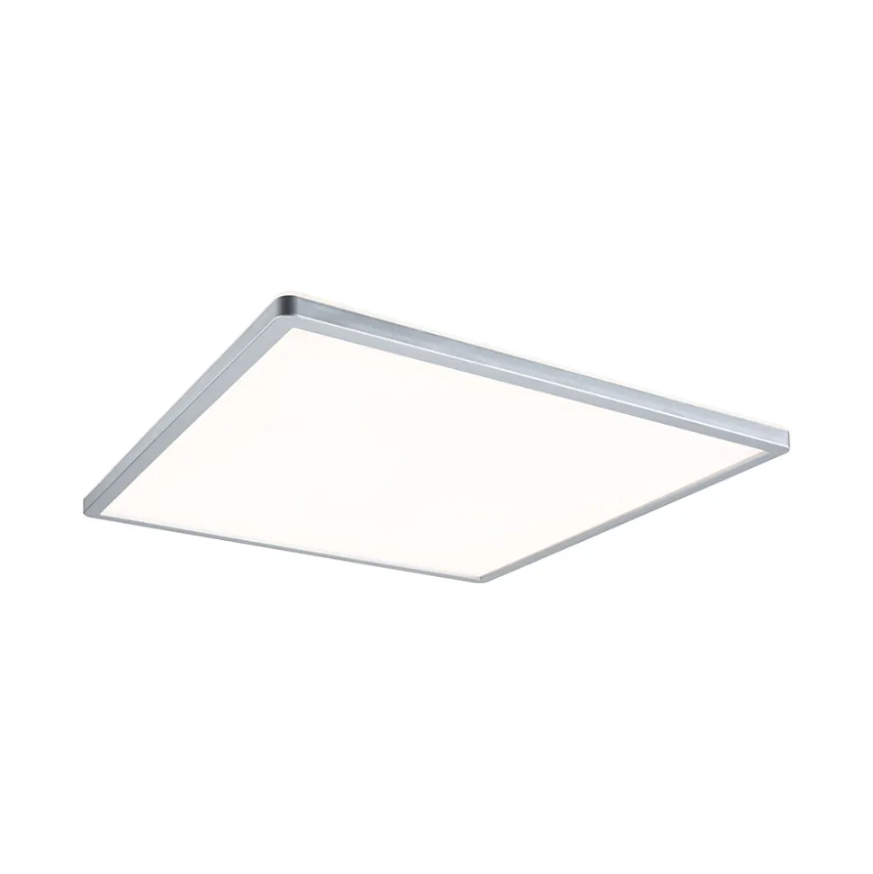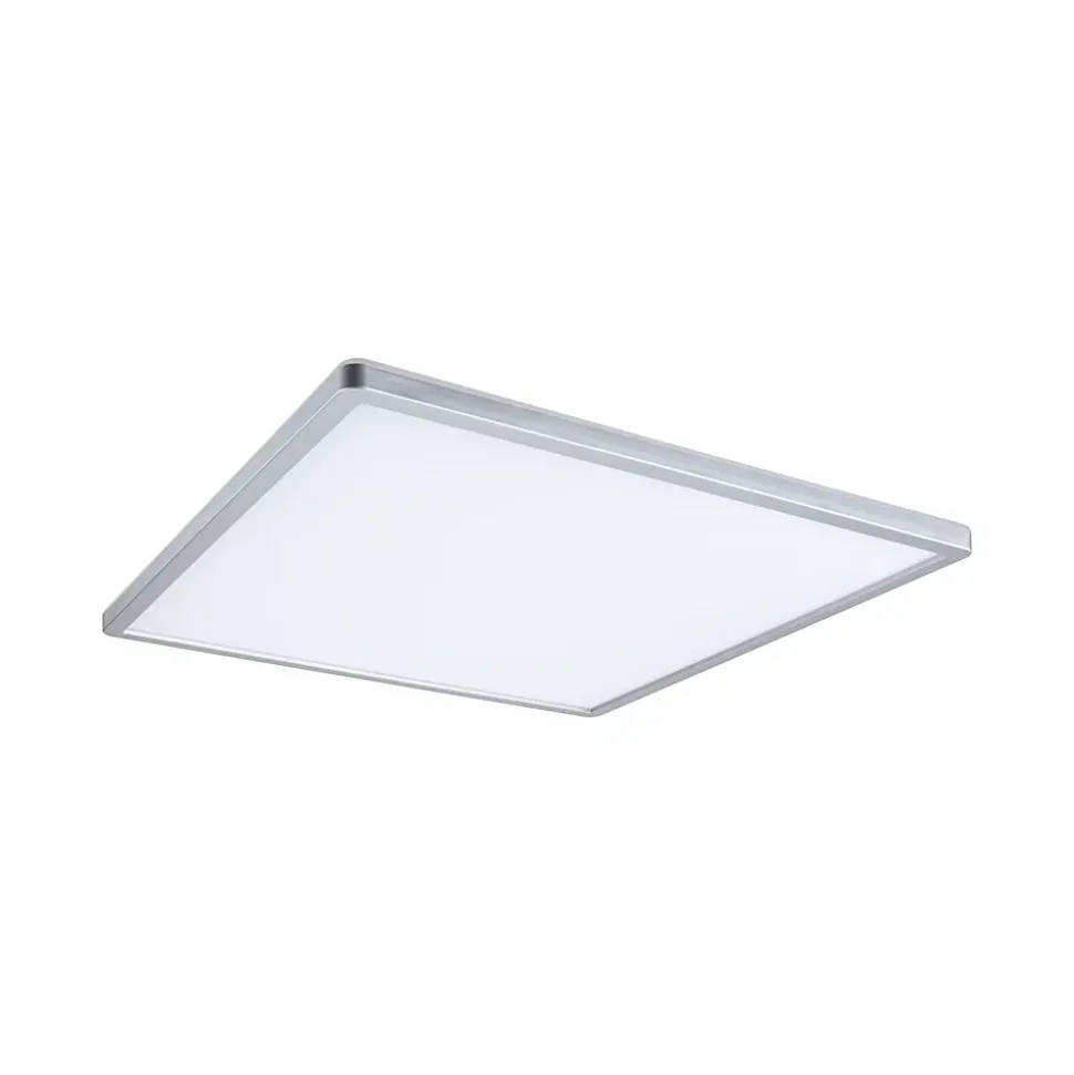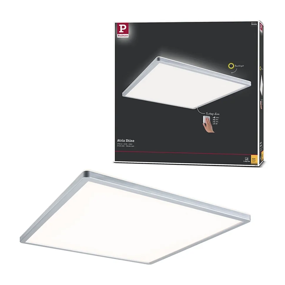 Avec une puissance de 22W, le panneau LED carrée Atria Shine de couleur Chrome mat et mesurant 420x420mm est idéal pour l’éclairage de base des salons, chambres ou cuisines. La lumière blanche et chaude du panneau permet d’éclairer la pièce de manière uniforme et étendue. Avec sa fonction intégrée gradable sur 3 niveaux, il offre trois intensités de lumière en actionnant plusieurs fois un simple commutateur traditionnel. La technologie Backlight supplémentaire crée une atmosphère de bien-être particulière et donne comme l’impression que l’éclairage du panneau flotte. Grâce aux clips de fixation rapides et à la fermeture à vis spéciale, le panneau, avec sa hauteur de montage ultraplate de 28 mm, est très facile à installer.