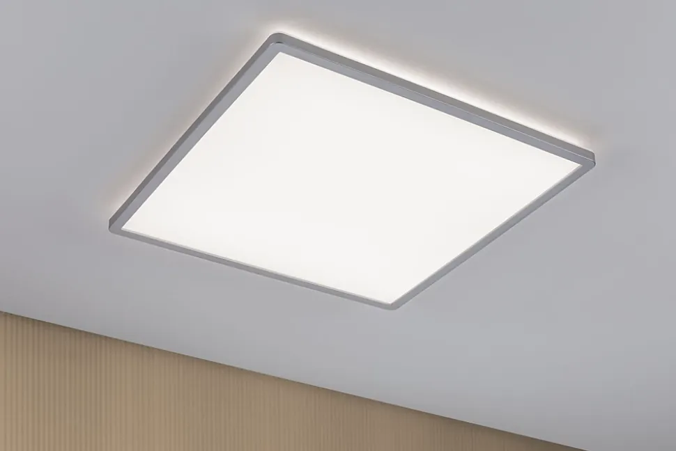 Avec une puissance de 22W, le panneau LED carrée Atria Shine de couleur Chrome mat et mesurant 420x420mm est idéal pour l’éclairage de base des salons, chambres ou cuisines. La lumière blanche et chaude du panneau permet d’éclairer la pièce de manière uniforme et étendue. Avec sa fonction intégrée gradable sur 3 niveaux, il offre trois intensités de lumière en actionnant plusieurs fois un simple commutateur traditionnel. La technologie Backlight supplémentaire crée une atmosphère de bien-être particulière et donne comme l’impression que l’éclairage du panneau flotte. Grâce aux clips de fixation rapides et à la fermeture à vis spéciale, le panneau, avec sa hauteur de montage ultraplate de 28 mm, est très facile à installer.