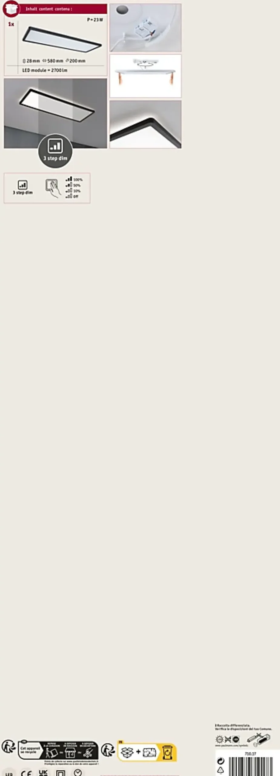 Avec une puissance de 22W, le panneau LED carrée Atria Shine de couleur Noir et mesurant 580x200mm est idéal pour l’éclairage de base des salons, chambres ou cuisines. La lumière du panneau permet d’éclairer la pièce de manière uniforme et étendue. La technologie Backlight supplémentaire crée une atmosphère de bien-être particulière et donne comme l’impression que l’éclairage du panneau flotte. Grâce aux clips de fixation rapides et à la fermeture à vis spéciale, le panneau, avec sa hauteur de montage ultraplate de 28 mm, est très facile à installer.