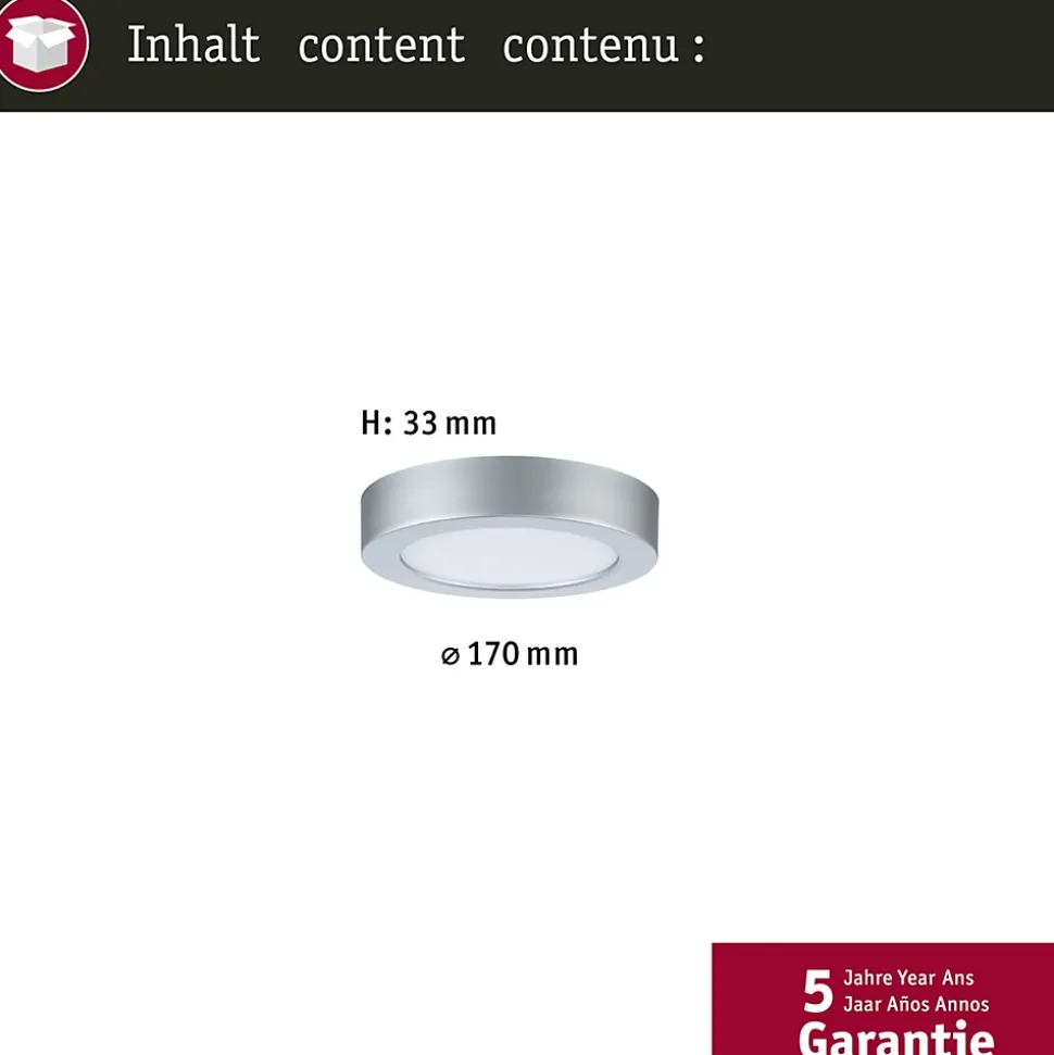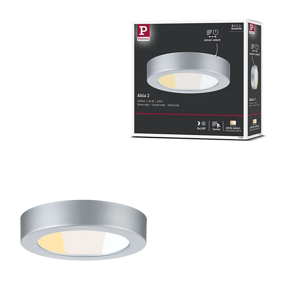 Plus de confort. Plus de sécurité. Plus de possibilités ! Le panneau Abia 2 met fin aux compromis et apporte une solution d’éclairage fonctionnelle dans chaque pièce. Un interrupteur Dip permet d’activer ou de désactiver le capteur de mouvement intégré commandé par crépuscule avant le montage. Le panneau offre ainsi une solution optimale aux différentes exigences des espaces fonctionnels, des cuisines ou des couloirs. Le capteur réagit de manière fiable aux mouvements et assure un confort et une sécurité accrus grâce à la commande automatique de l’éclairage. Lorsque le capteur est activé, la lumière ne s’allume que lorsqu’elle est nécessaire, ce qui permet une utilisation efficace de l’énergie. Lorsque le capteur est désactivé, le panneau LED peut être allumé et éteint confortablement comme d’habitude à l’aide de l’interrupteur mural existant. L’interrupteur Dip White Select, qui permet de régler la température de Farbe avant le montage, offre également une flexibilité maximale. Selon les besoins, il est possible de choisir entre deux tons de blanc chaud et un ton de blanc neutre. Le panneau d’un diamètre de 170mm est facile à monter et s’intègre parfaitement dans tout environnement résidentiel, fonctionnel ou de travail grâce à son design intemporel en Chrome mat.