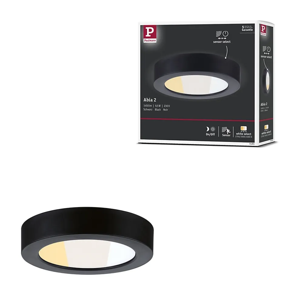 Plus de confort. Plus de sécurité. Plus de possibilités ! Le panneau Abia 2 met fin aux compromis et apporte une solution d’éclairage fonctionnelle dans chaque pièce. Un interrupteur Dip permet d’activer ou de désactiver le capteur de mouvement intégré commandé par crépuscule avant le montage. Le panneau offre ainsi une solution optimale aux différentes exigences des espaces fonctionnels, des cuisines ou des couloirs. Le capteur réagit de manière fiable aux mouvements et assure un confort et une sécurité accrus grâce à la commande automatique de l’éclairage. Lorsque le capteur est activé, la lumière ne s’allume que lorsqu’elle est nécessaire, ce qui permet une utilisation efficace de l’énergie. Lorsque le capteur est désactivé, le panneau LED peut être allumé et éteint confortablement comme d’habitude à l’aide de l’interrupteur mural existant. L’interrupteur Dip White Select, qui permet de régler la température de Farbe avant le montage, offre également une flexibilité maximale. Selon les besoins, il est possible de choisir entre deux tons de blanc chaud et un ton de blanc neutre. Le panneau d’un diamètre de 170mm est facile à monter et s’intègre parfaitement dans tout environnement résidentiel, fonctionnel ou de travail grâce à son design intemporel en Noir.