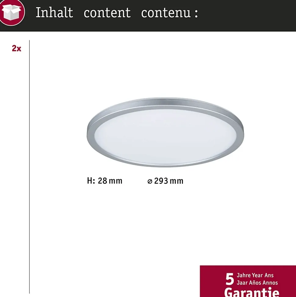Cache en plastique satiné pour une diffusion subtile de la lumière|Éclairage de pièce uniforme sur la base de la technologie LED la plus récente|Design particulièrement plat|Ampoules LED intégrée également fournies|Pour raccordement direct au secteur 230V
