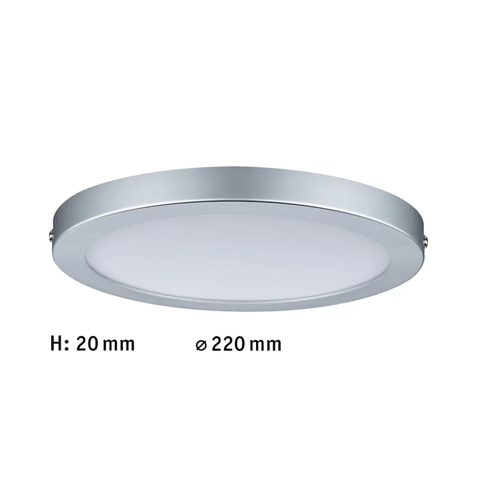 Le panneau rond chrome mat Atria d’une puissance de 15 watts offre un éclairage intérieur blanc neutre, homogène et étendu. Grâce à son épaisseur de 20 mm, il est particulièrement plat. Le luminaire peut être installé sur quasiment tous les supports grâce à son armature légère en plastique facile d’entretien.