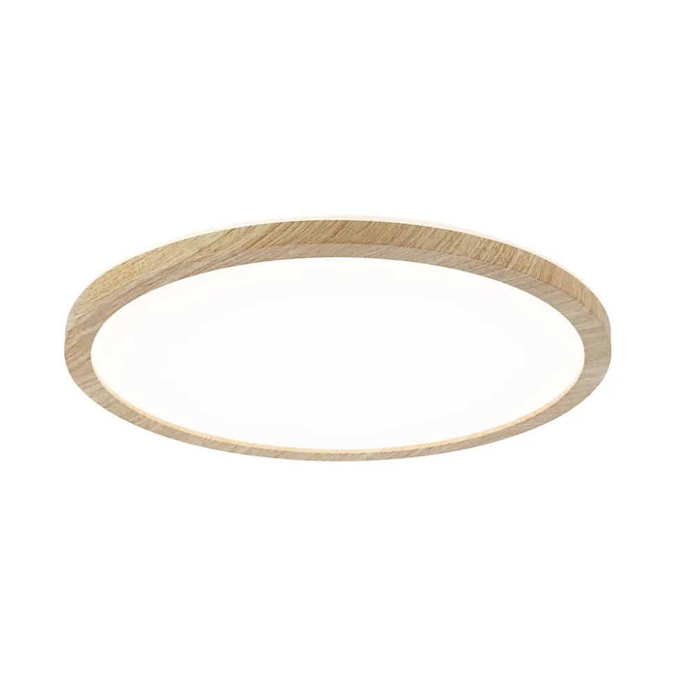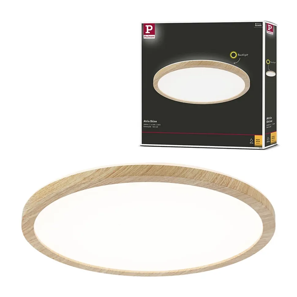 Avec une puissance de 16W, le panneau LED rond Atria Shine mesurant 293 mm est idéal pour l’éclairage de base des salons, chambres ou cuisines. Le design unique du cadre à l’aspect bois confère au panneau un aspect naturel et confortable. La lumière blanche et chaude du panneau permet d’éclairer la pièce de manière uniforme et étendue. La technologie lumineuse supplémentaire Backlight donne l’impression que le panneau lumineux flotte. Grâce au clip de fixation rapide et au montage de la platine, le panneau est très facile à installer avec sa hauteur de montage ultra-plate de 28 mm.