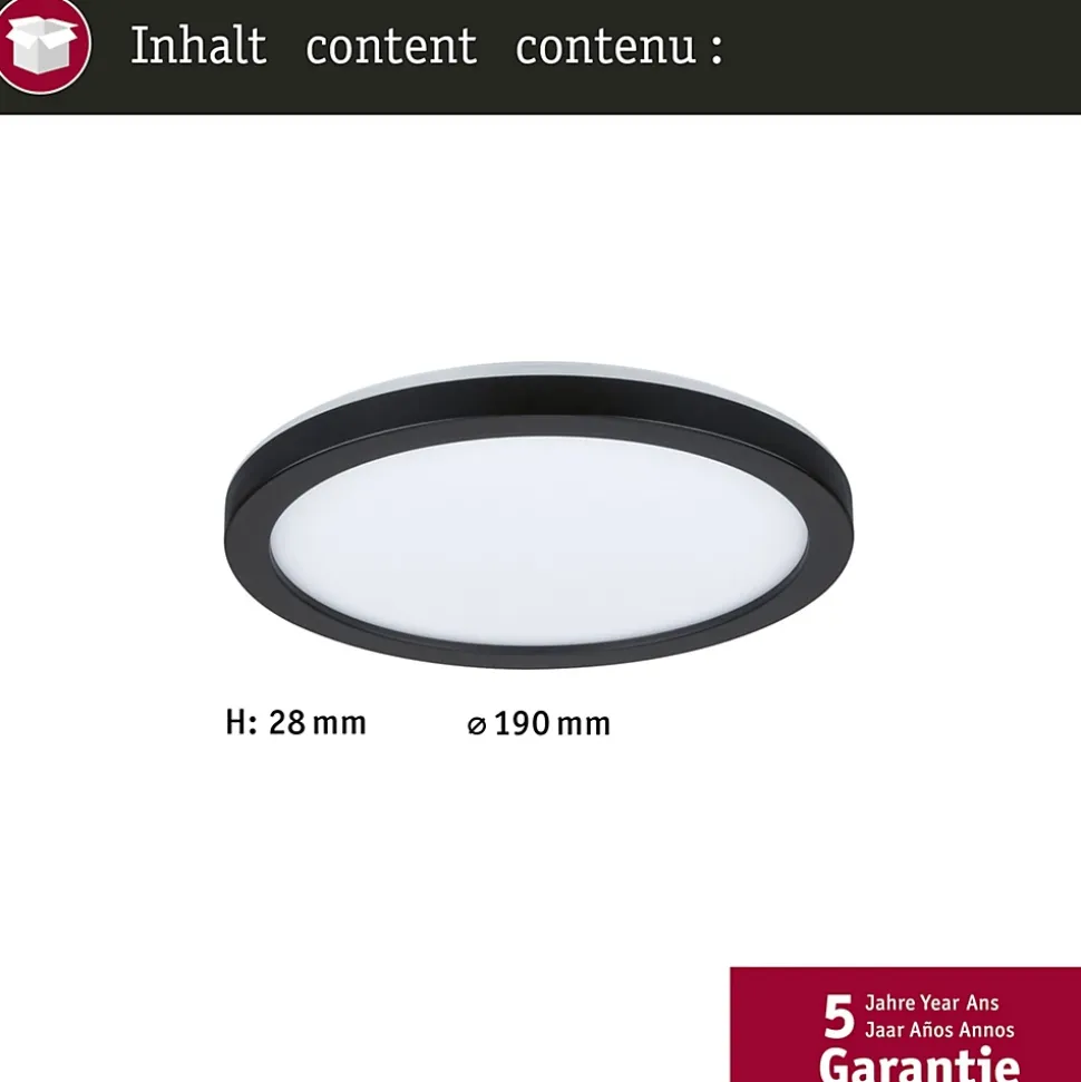 Avec une puissance de 11,2W, le panneau LED ronde Atria Shine de couleur Noir et mesurant 190mm est idéal pour l’éclairage de base des salons, chambres ou cuisines. La lumière blanche et chaude du panneau permet d’éclairer la pièce de manière uniforme et étendue. La technologie Backlight supplémentaire crée une atmosphère de bien-être particulière et donne comme l’impression que l’éclairage du panneau flotte. Grâce aux clips de fixation rapides et à la fermeture à vis spéciale, le panneau, avec sa hauteur de montage ultraplate de 28 mm, est très facile à installer.