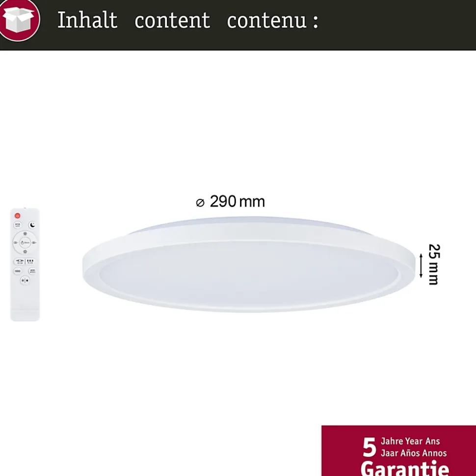 Le panneau polyvalent Atria Shine, d’un diamètre de 290mm, offre un éclairage à la fois direct et indirect, grâce à sa technologie Backlight et Frontlight contrôlable séparément. Le frontlight dispose de la fonction Tunable White, tandis que le backlight crée une atmosphère particulière dans la pièce grâce à sa fonction RGB. La fonction Tunable White permet de régler la température de couleur de la lumière, du blanc chaud au blanc lumière du jour. Grâce à la fonction mémoire, le scénario d’éclairage choisi est enregistré et à la prochaine mise en marche, le luminaire s’allumera avec l’intensité lumineuse préréglée. La télécommande permet de régler individuellement le Backlight et le Frontlight et d’activer d’autres fonctions telles que la minuterie ou le défilement des couleurs RGB. Le design sobre du panneau séduit par son design particulièrement plat et la technologie de Backlight d’ambiance confère au panneau un aspect discret, presque flottant. Le panneau Atria Shine est parfaite pour les champs d’application les plus variés. Par exemple, dans une chambre d’adolescent, le panneau peut créer une atmosphère moderne et agréable grâce à ses multiples options d’éclairage et de changement de couleur, qui invitent à la fois à l’étude et à la détente. Le rétroéclairage RGB constitue également un complément parfait à l’éclairage de base dans la pièce de gaming. Le montage au mur ou au plafond est particulièrement simple et facile grâce au clip de fixation rapide et à la fermeture à vis.