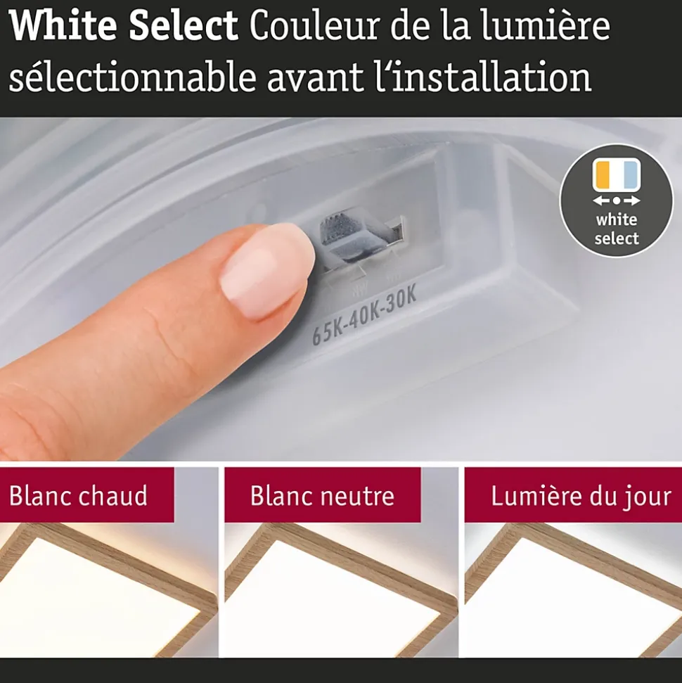 Le carrépanneau Atria Shine en Esthétique bois est vraiment polyvalent grâce à sa grande performance énergétique et sa variété de couleurs de feu ! Avec sa performance énergétique améliorée, passée de la classe E à la classe B, le nouveau panneau Atria Shine offre une solution d’éclairage innovante et durable. Cette réduction significative de la consommation d’énergie est non seulement bénéfique pour l’environnement, mais aussi pour le porte-monnaie. Avec une taille de ${Abmessung} et une puissance de 9,5 watts, le panneau LED convient non seulement à l’éclairage de base des salons et des chambres à coucher, mais aussi et surtout à une utilisation dans les salles de bain, les cuisines ou autres pièces humides. Avant l’installation, l’interrupteur White Select permet de choisir entre trois températures de couleur : blanc chaud (3000 K), blanc neutre (4000 K) ou blanc lumière du jour (6500 K). Que ce soit pour un espace de vie confortable, pour l’éclairage fonctionnel d’une cuisine ou un bureau bien éclairé, il existe une atmosphère lumineuse adaptée à chaque pièce. L’aspect visuel du luminaire se distingue par son apparence presque flottante, obtenue grâce à la technologie Backlight efficace. Grâce à son design sobre, il s’intègre parfaitement dans différents styles d’aménagement et peut même être utilisé dans la salle de bains grâce à sa protection IP44. Le montage au mur ou au plafond est simple grâce à la fermeture rotative et au clip de fixation rapide.