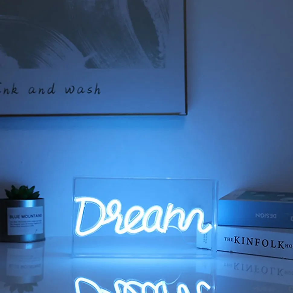 Enseigne lumineuse au néon avec le texte >Le panneau LED est facile à installer et à utiliser. Elle peut être accrochée au mur ou placée sur une surface plane. Grâce à la technologie LED, elle est également très économe en énergie.- Alimentation électrique : USB- Matériau : acrylique transparent / silicone- Dimensions : H 12,7 cm / L 23 cm / P 4.4 cmEnseigne à LED néon colorée : cette enseigne à LED offre un éclairage vif et attrayant grâce à la technologie néon. Les lumières colorées apportent une touche vibrante et moderne à n’importe quel environnement, créant une atmosphère chaleureuse et tendance.Cette enseigne est assez compacte pour s’adapter à une variété d’espaces, du bureau à la chambre à coucher, du bar au magasin. Sa petite taille le rend également facile à transporter et à positionner selon vos besoins.Prise USB : équipée d’un port USB, cette enseigne peut être alimentée facilement en la connectant à une prise USB disponible sur un ordinateur portable, une batterie externe, un adaptateur secteur USB et plus encore. Cette fonctionnalité la rend polyvalente et adaptée à différentes situations et environnements.Design moderne et élégant : le design minimaliste et moderne de cette enseigne à LED en fait un ajout élégant à n’importe quel décor. Son esthétique accrocheuse ajoute une touche de style et de personnalité à n’importe quelle pièce ou espace.Utilisation polyvalente : cette enseigne à LED est adaptée à une variété de fins, que ce soit pour décorer des fêtes, des événements spéciaux, des mariages ou tout simplement pour ajouter une touche de luminosité et de couleur à votre maison ou votre lieu de travail. Sa polyvalence en fait un accessoire amusant et pratique pour de nombreuses occasions. »…