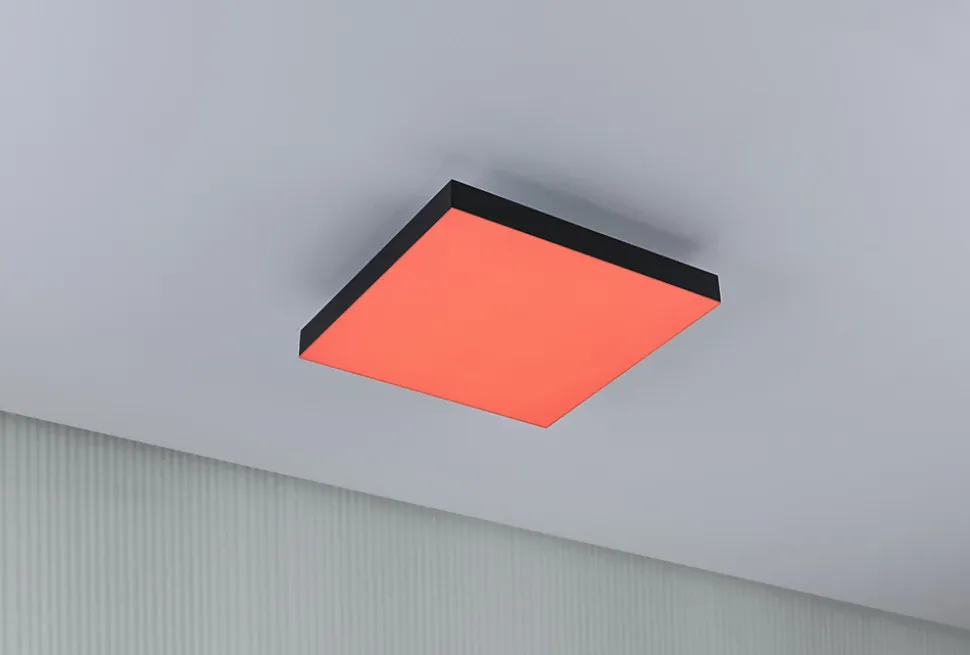Pour des effets lumineux spectaculaires dans le salon – Le panneau LED Velora Rainbow de couleur Noir et de dimensions 295x295mm, allie un excellent éclairage de la pièce à la pure magie des couleurs, car ici, les meilleures caractéristiques d’éclairage se trouvent combinées à des effets de couleur dynamiques. La température de couleur est réglable en continu par télécommande, de 3000 K blanc chaud à 6500 K blanc lumière du jour, ce qui est propice au biorythme naturel. Le panneau LED vous séduira aussi avec ses 16 animations prédéfinies et son contrôle dynamique des couleurs, qui ne sont possibles qu’avec un éclairage étendu. La vitesse de chaque scénario d’éclairage peut être adaptée ou figée comme un plan fixe. Cela permet de créer un éclairage étendu unique et individuel. Le panneau LED Velora Rainbow est réglable en continu et dispose d’une fonction veilleuse intégrée. Le panneau se distingue par sa surface lumineuse dépolie de haute qualité et par son design élégant dépourvu de bord. La pose au mur ou au plafond se fait au moyen d’un cadre flottant.