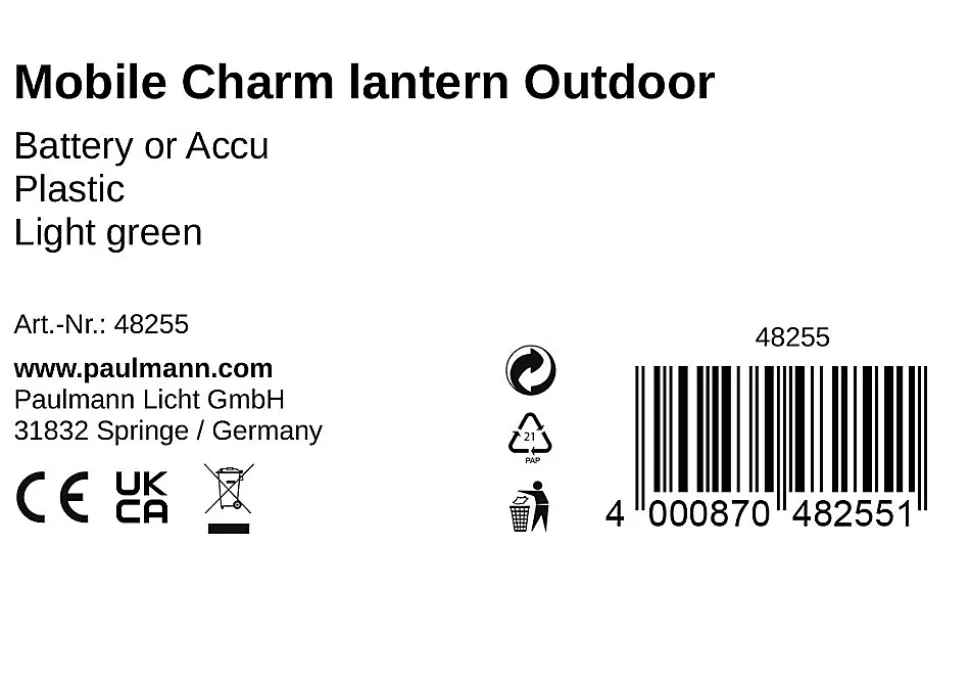 Avec son coloris vert clair délicat, la lanterne mobile Charm convient à merveille pour une utilisation en plein air. Équipée d’une protection IP44 contre l’aspersion et d’un mode de fonctionnement avec pile ou batterie, cette lanterne facile à vivre peut prendre place sans problème à l’extérieur. Voilà un luminaire qui crée une atmosphère chaleureuse avec en outre une lumière à emporter !